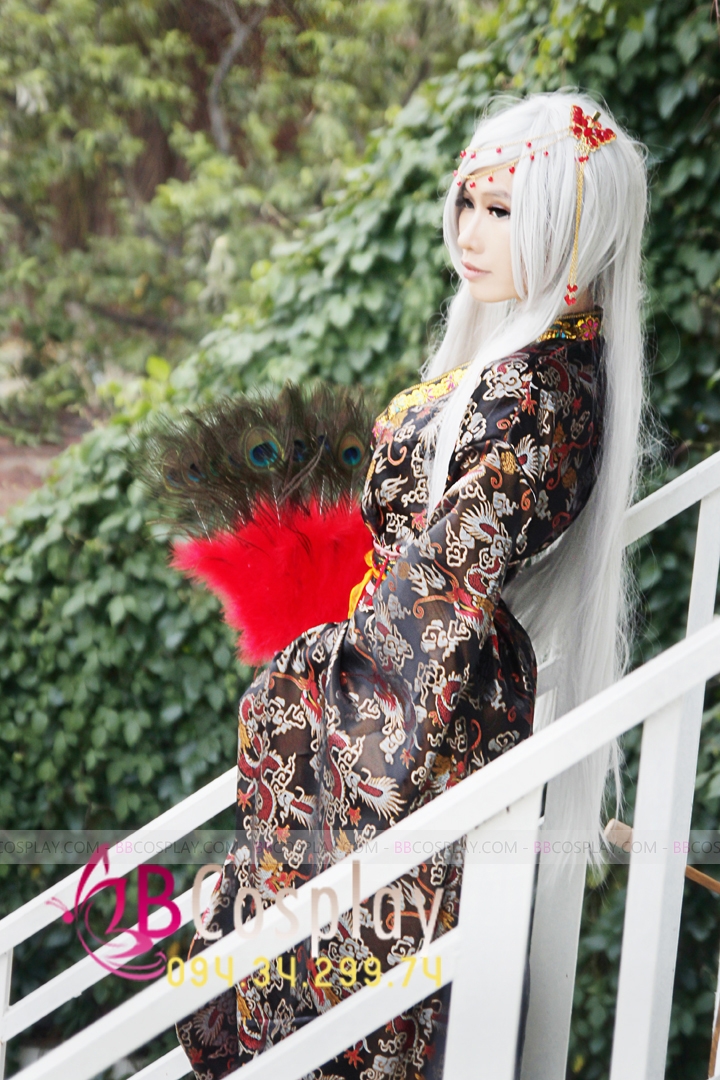 Trang Phục Nàng Hầu Nhật Đen Tạp Dề Trắng Cổ Áo Lá Sen
