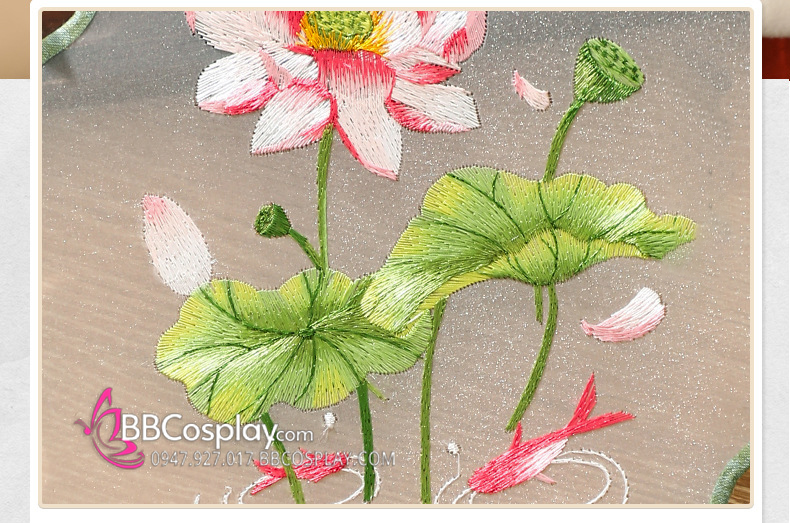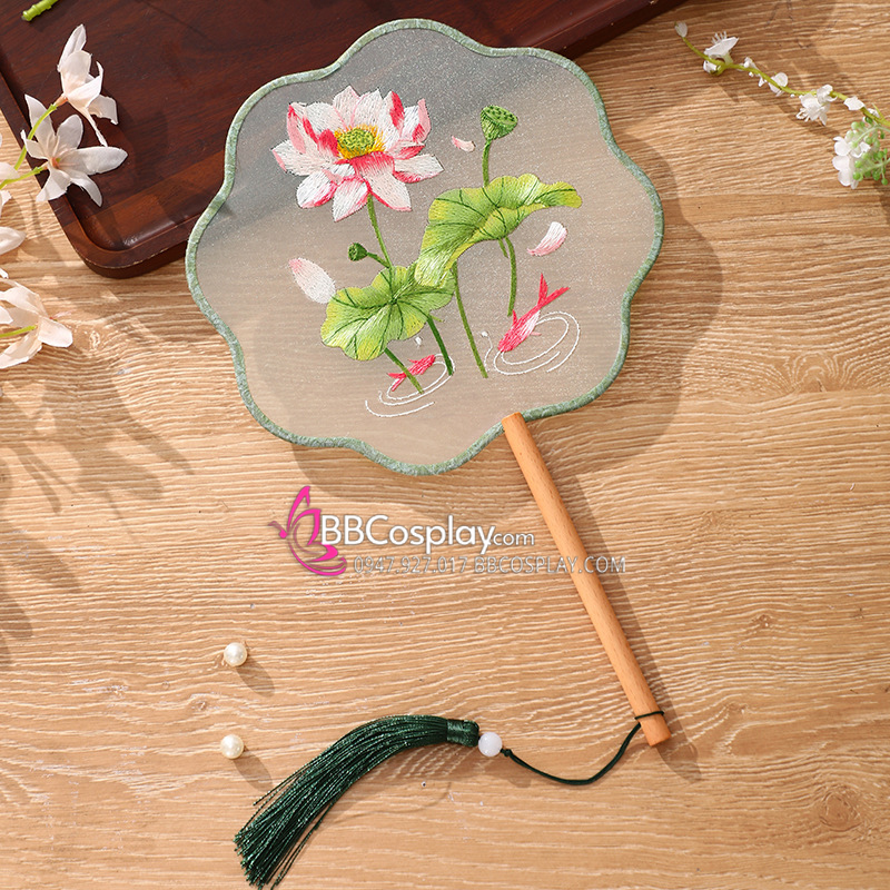 Quạt Hoa Thêu Hoa Sen Và Cá Vàng