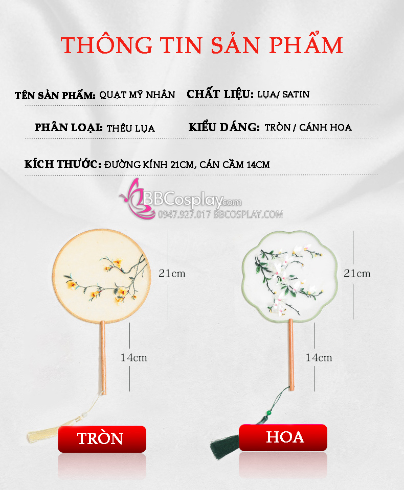 - cán dài 12.5cm, Tua rua dưới chuôi quạt dài 20cm