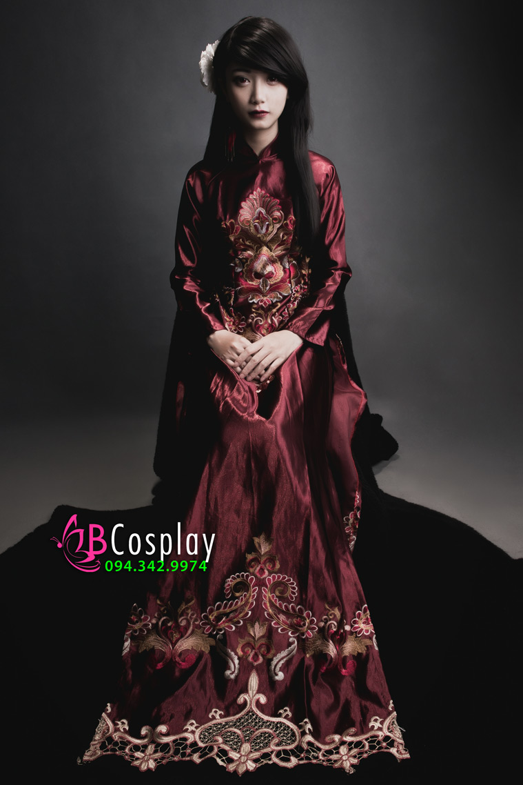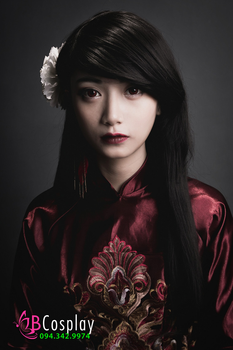 Trang Phục Nàng Hầu Nhật Đen Tạp Dề Trắng Cổ Áo Lá Sen