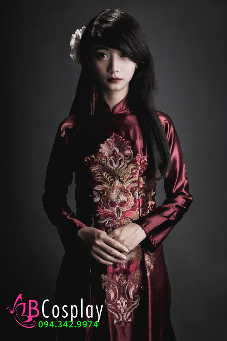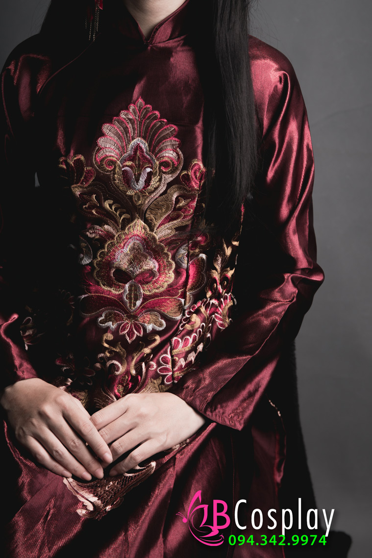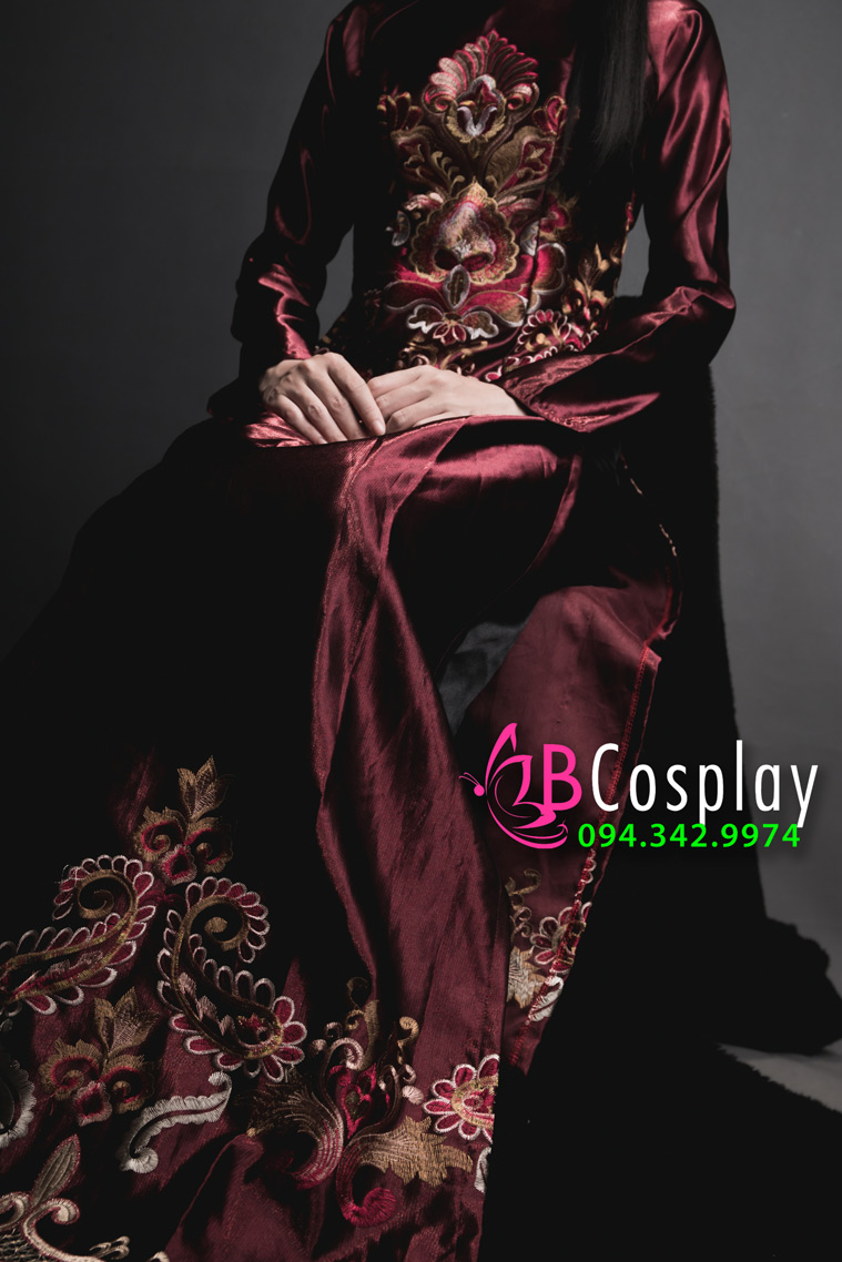 Trang Phục Nàng Hầu Cổ Lá Sen Kèm Tạp Dề Caro - Màu Đỏ