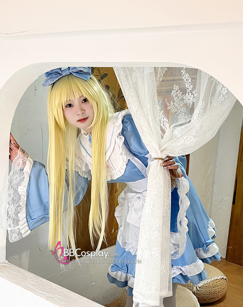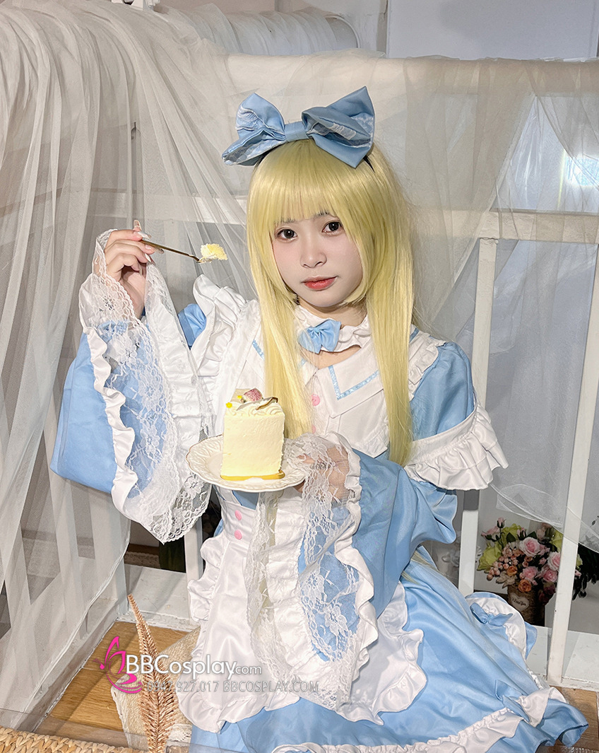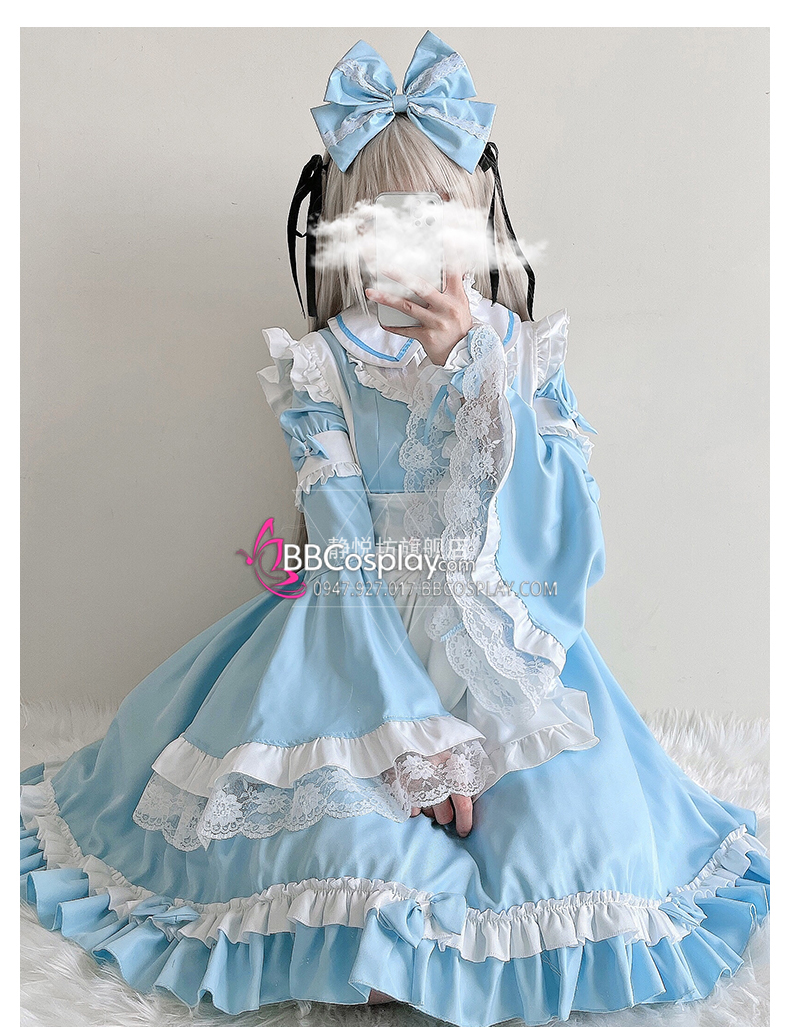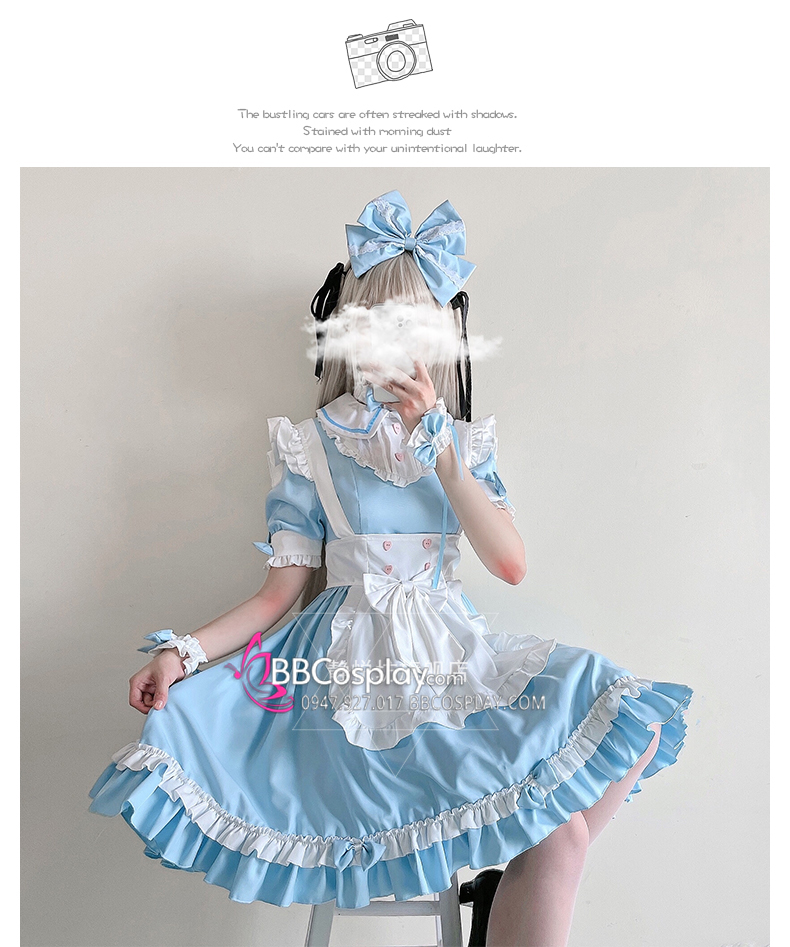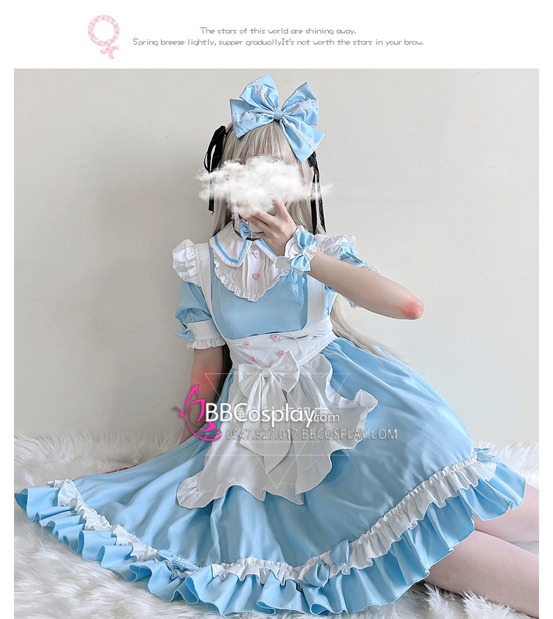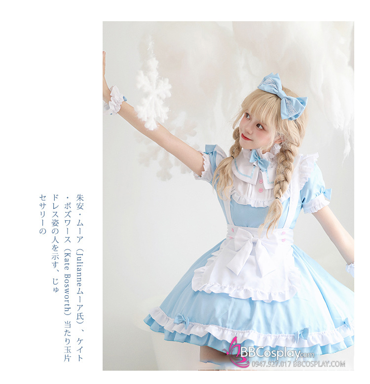 Đồ Nàng Hầu Maid Xanh Dương Tạp Dề Trắng Kèm Nhiều Nơ