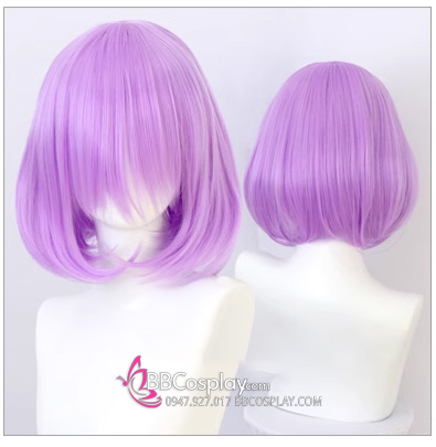 Tóc Ngắn Giả Tím Nhạt Mái Xéo