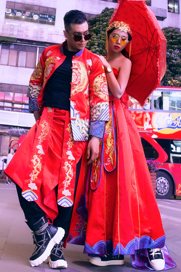 Bộ Hỉ Phục Nam Nữ vẫn là vải phi được thêu rồng phụng đẹp mắt nhưng sẽ thể hiện phong cách và sự táo bạo của cặp đôi khi phối với nhiều kiểu trang phục khác nhau. Những cặp đôi có ngân sách hạn hẹp có thể thử qua sản phẩm này, hoặc thuê mua thêm phụ kiện cưới với giá rẻ nhất tại BBCosplay.