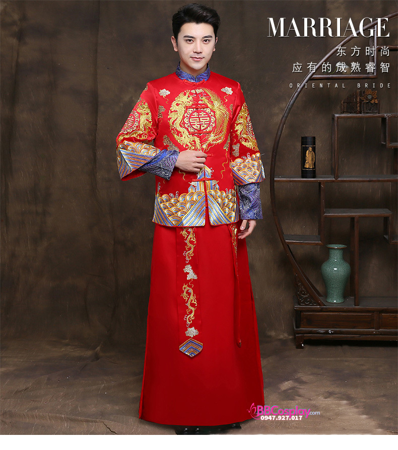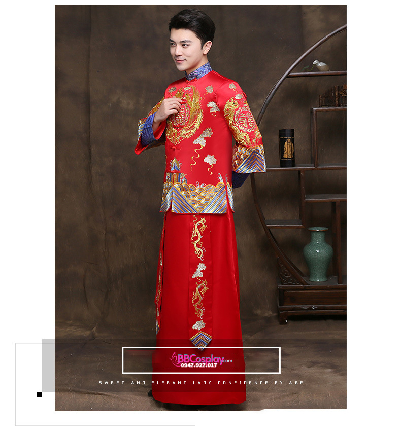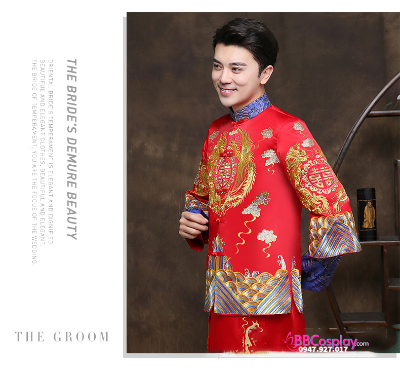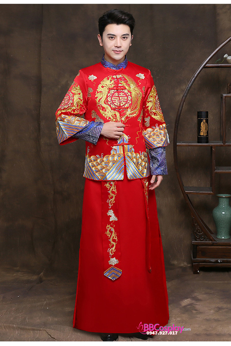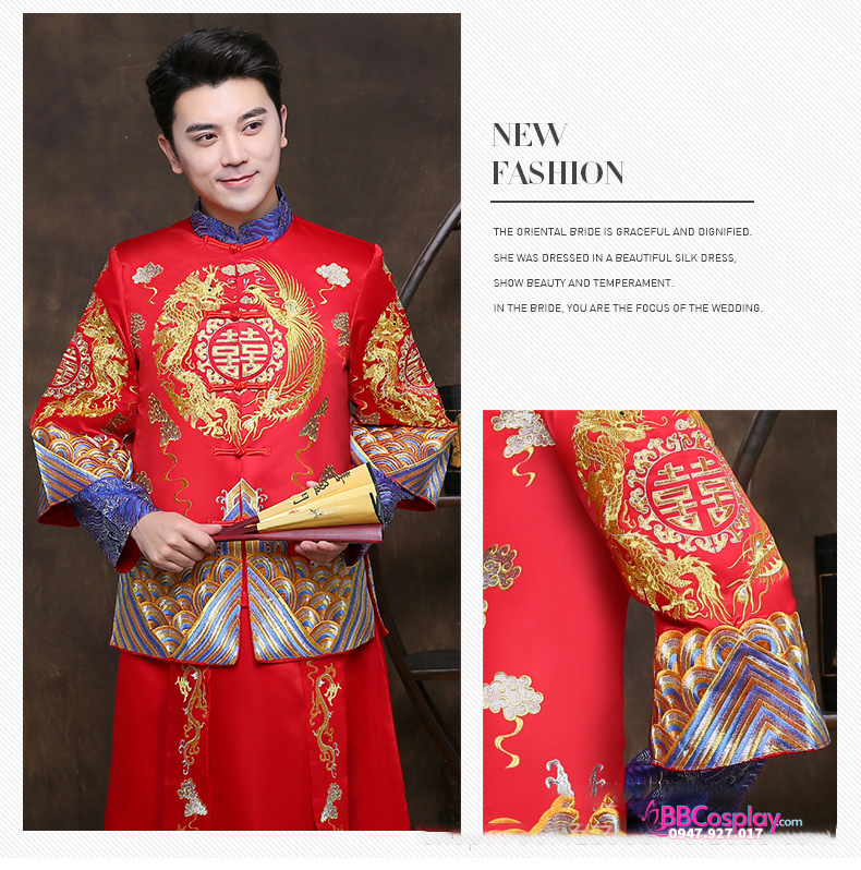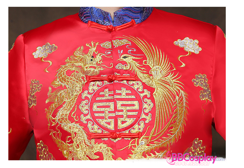 Hỉ Phục tân làng 2019 là mẫu hỉ phục luôn cháy hàng tại BBCosplay vì vải phi chất đẹp, dày dặn; thêu rồng phụng bằng chỉ vàng và xanh rất hiếm gặp, giá hạt dẻ và còn được giảm nếu thuê cùng set bộ hỉ phục nữ. Album và ngày cưới của bạn sẽ trở nên rất đẹp và lộng lẫy nếu bạn chọn hỉ phục tại BBCosplay.