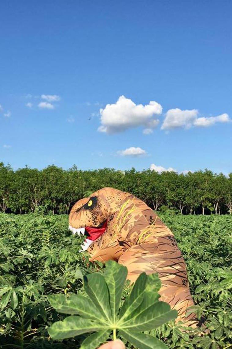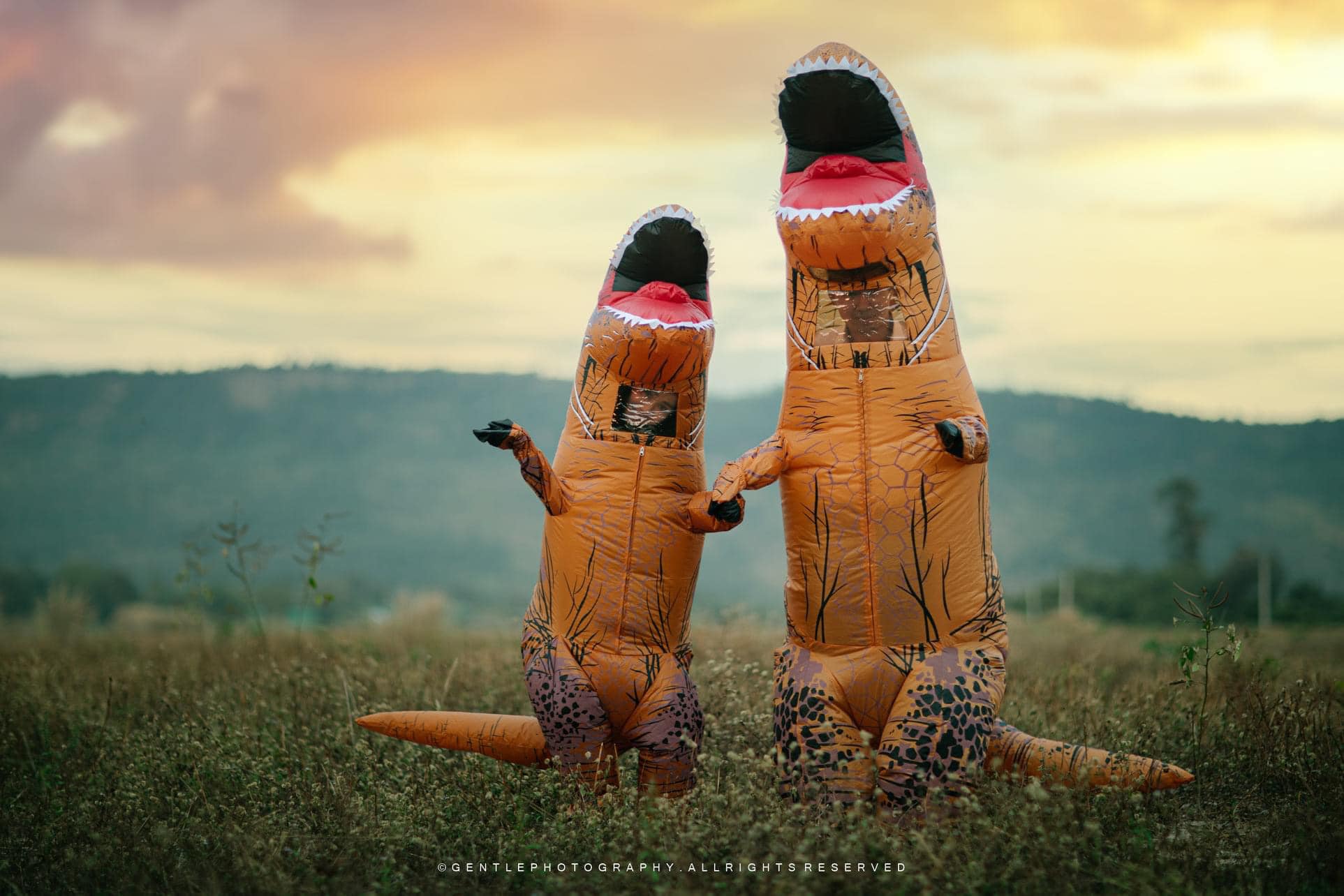Một lưu ý nhỏ để bạn luôn tỏa sáng: Hãy nhớ giữ bộ đồ tránh xa vật nhọn và lửa nhé. Và đặc biệt, hãy luôn để chiếc quạt bơm hơi chạy trong túi quần khi mặc để khủng long được cung cấp hơi liên tục.