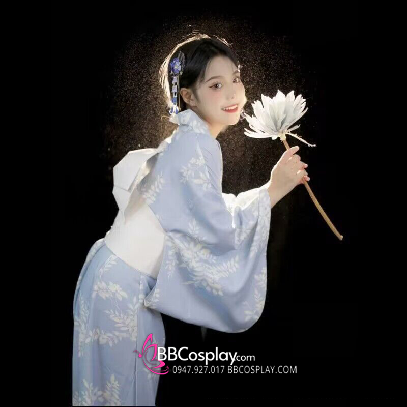 Yukata Xanh Trời Hoa Trắng