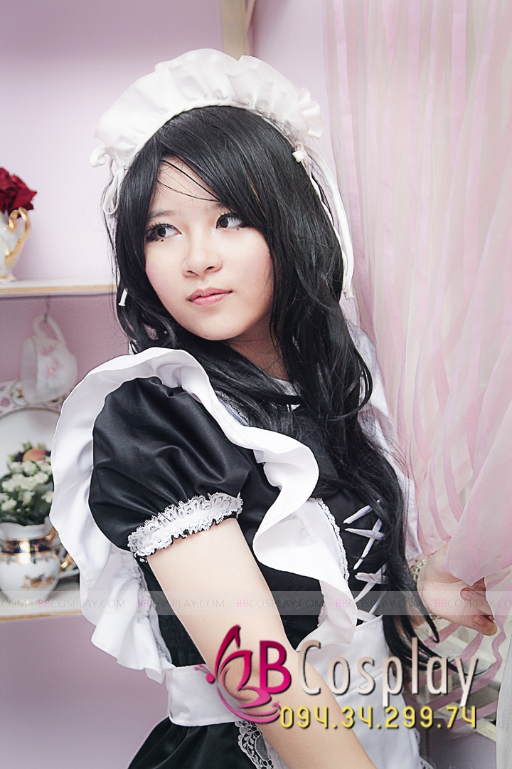 Trang Phục Nàng Hầu Nhật Đen Tạp Dề Trắng Cổ Áo Lá Sen
