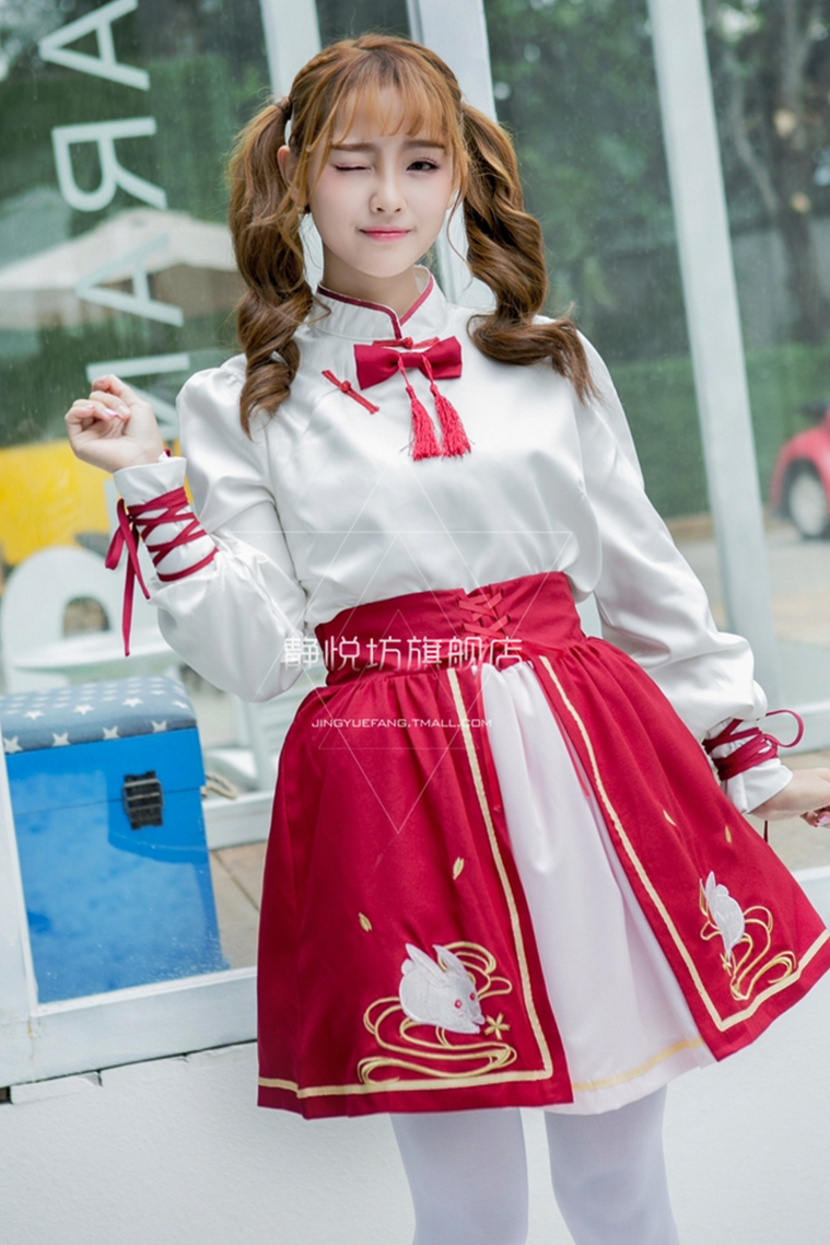 Trang Phục Lolita Đen Trắng Thêu Hoạ Tiết Chân Mèo Kèm Chuông Cổ