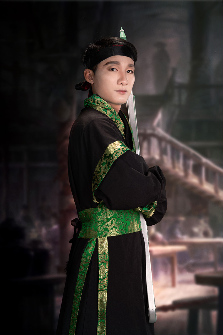 Trang Phục Nam Hiệp Đen Viền Xanh Lá