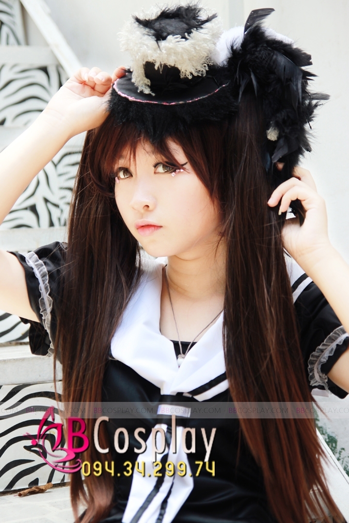 Trang Phục Nàng Hầu Nhật Đen Tạp Dề Trắng Cổ Áo Lá Sen