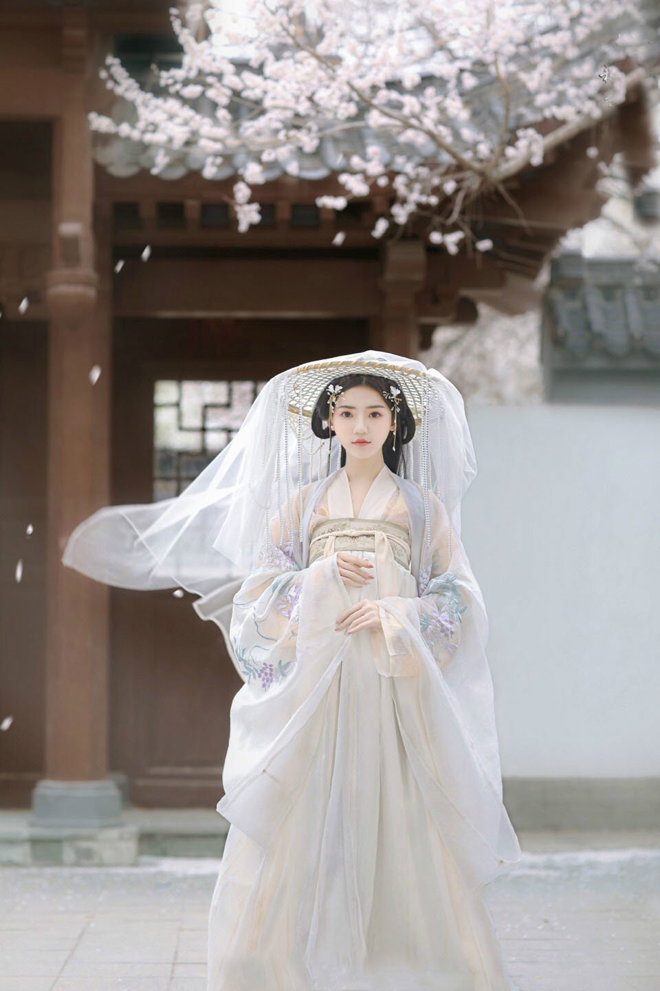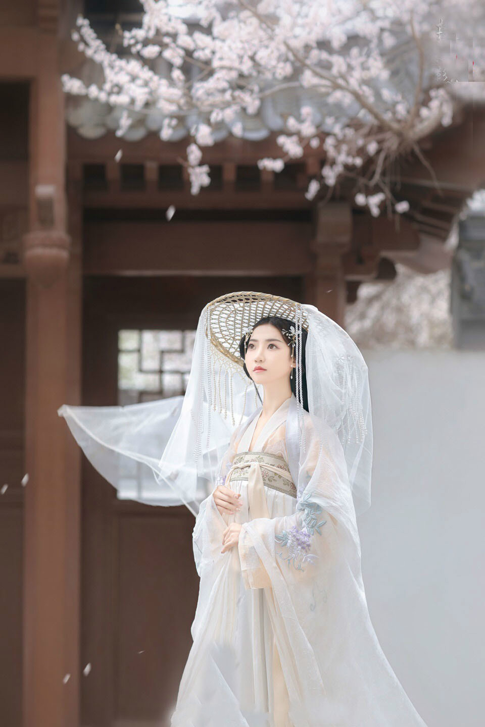 Áo trên + váy ngang ngực + khoác + Nón lẻ + khăn voan