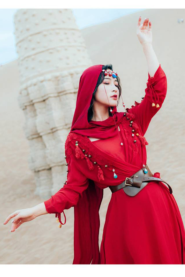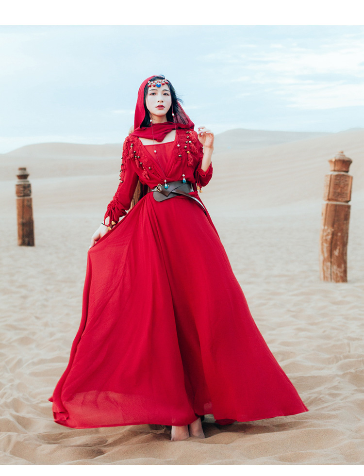 áo trong + đầm + thắt lưng + choàng đầu kèm chuông