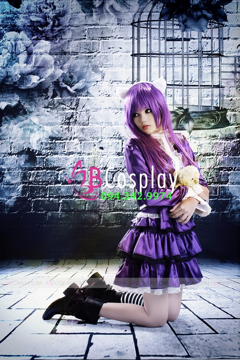 Trang Phục Lolita Đen Trắng Thêu Hoạ Tiết Chân Mèo Kèm Chuông Cổ