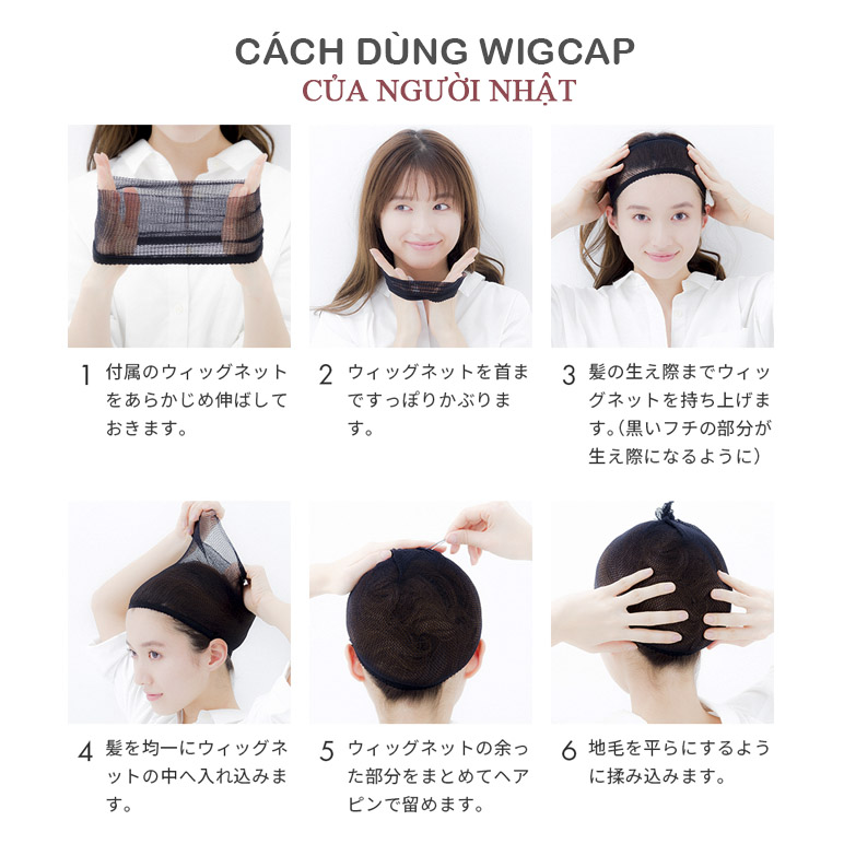 Bạn có thể tham khảo hình ảnh hướng dẫn cách đội tóc giả của người Nhật để biết thêm chi tiết về cách sử dụng Lưới Trùm Tóc Giả Wig Cap một cách hiệu quả nhất. Chỉ cần vài bước đơn giản:
