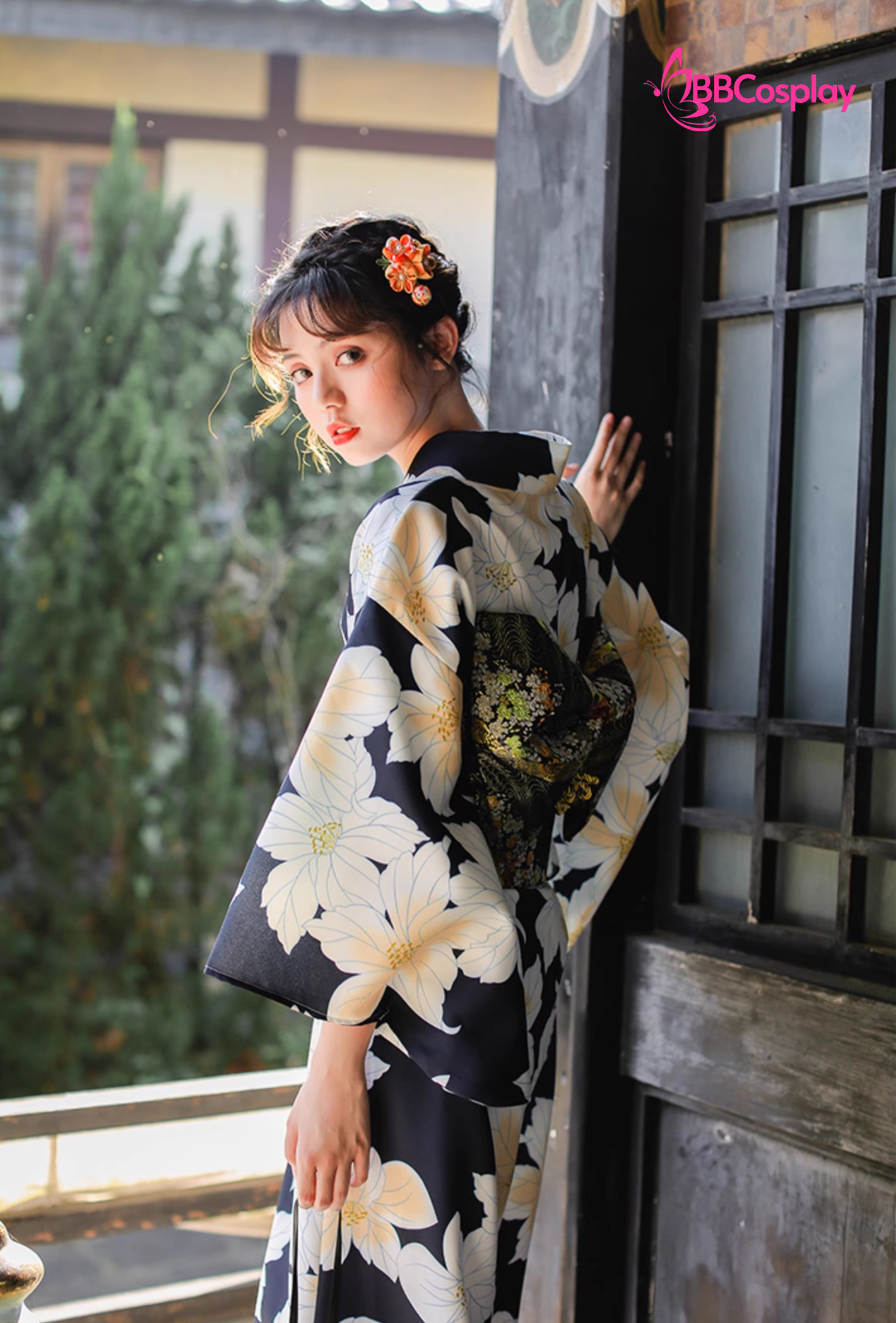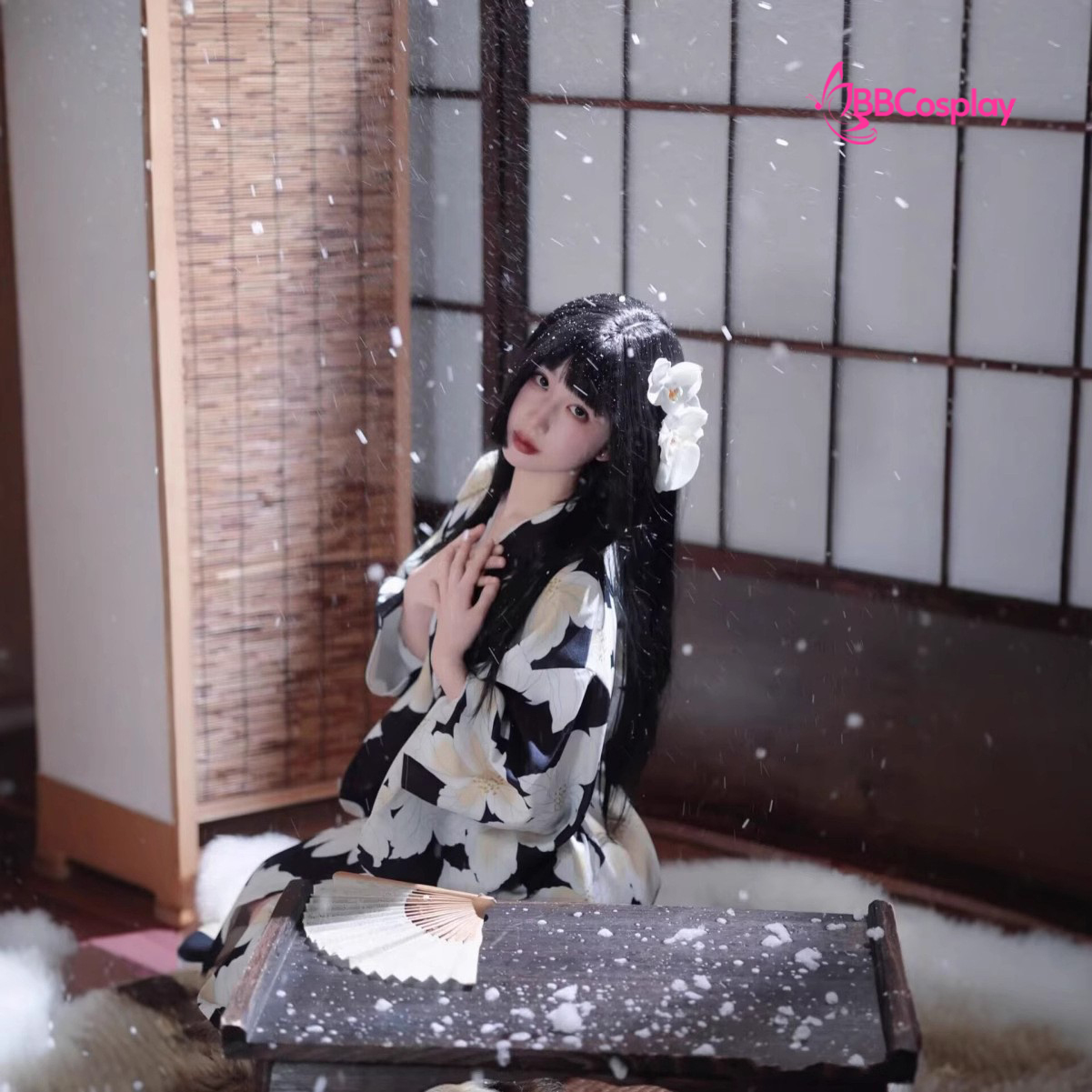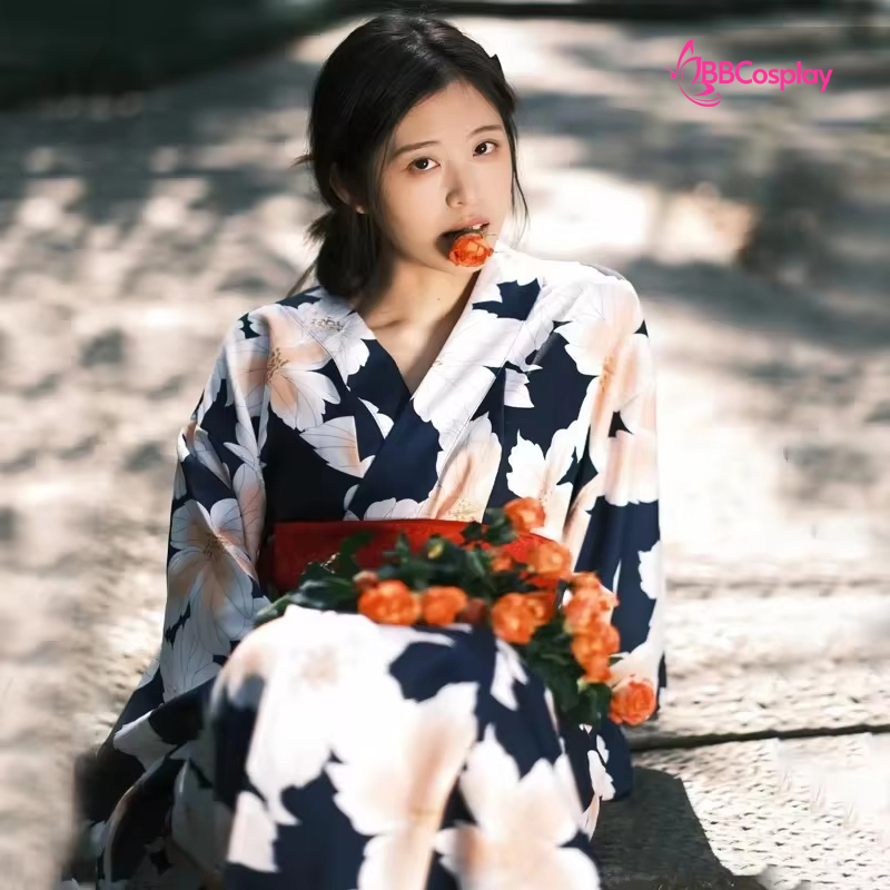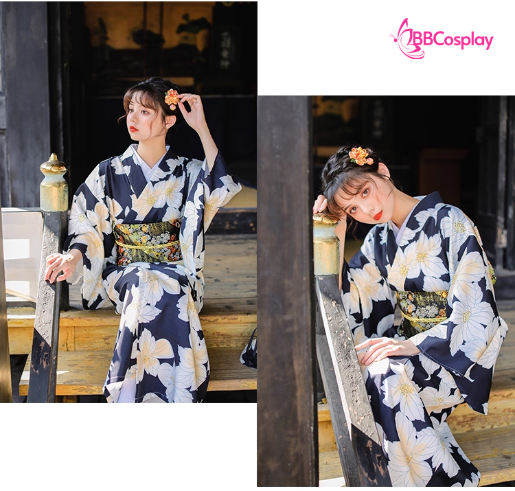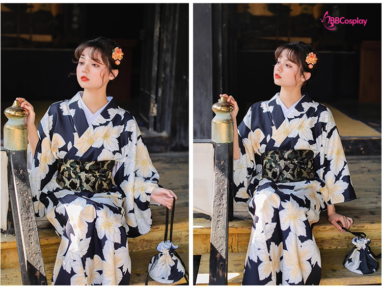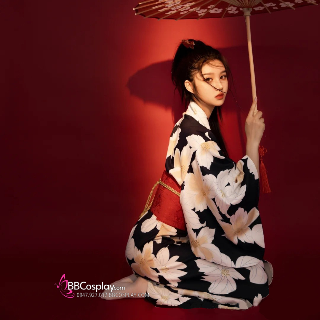 Yukata Đen Hoa Trắng