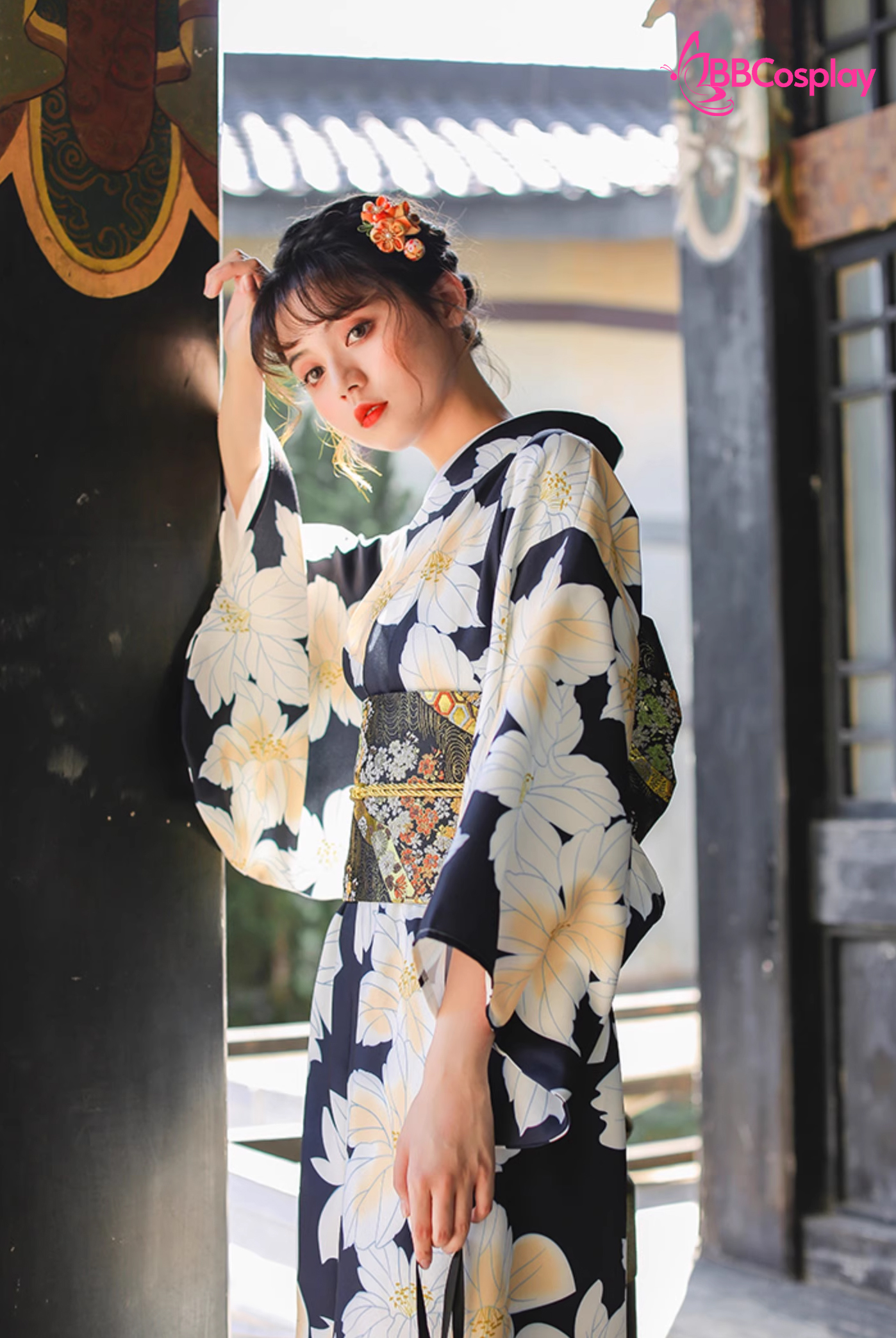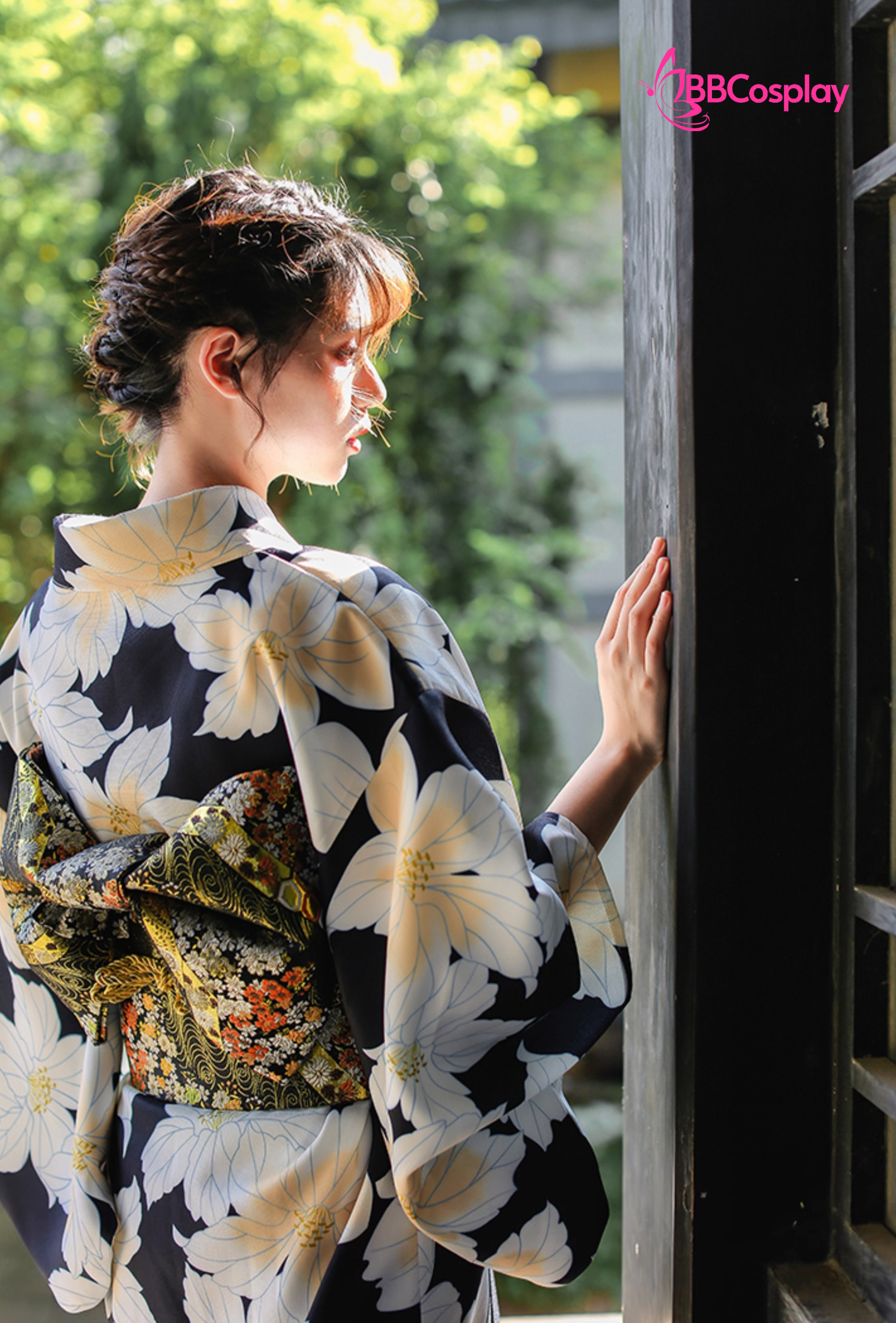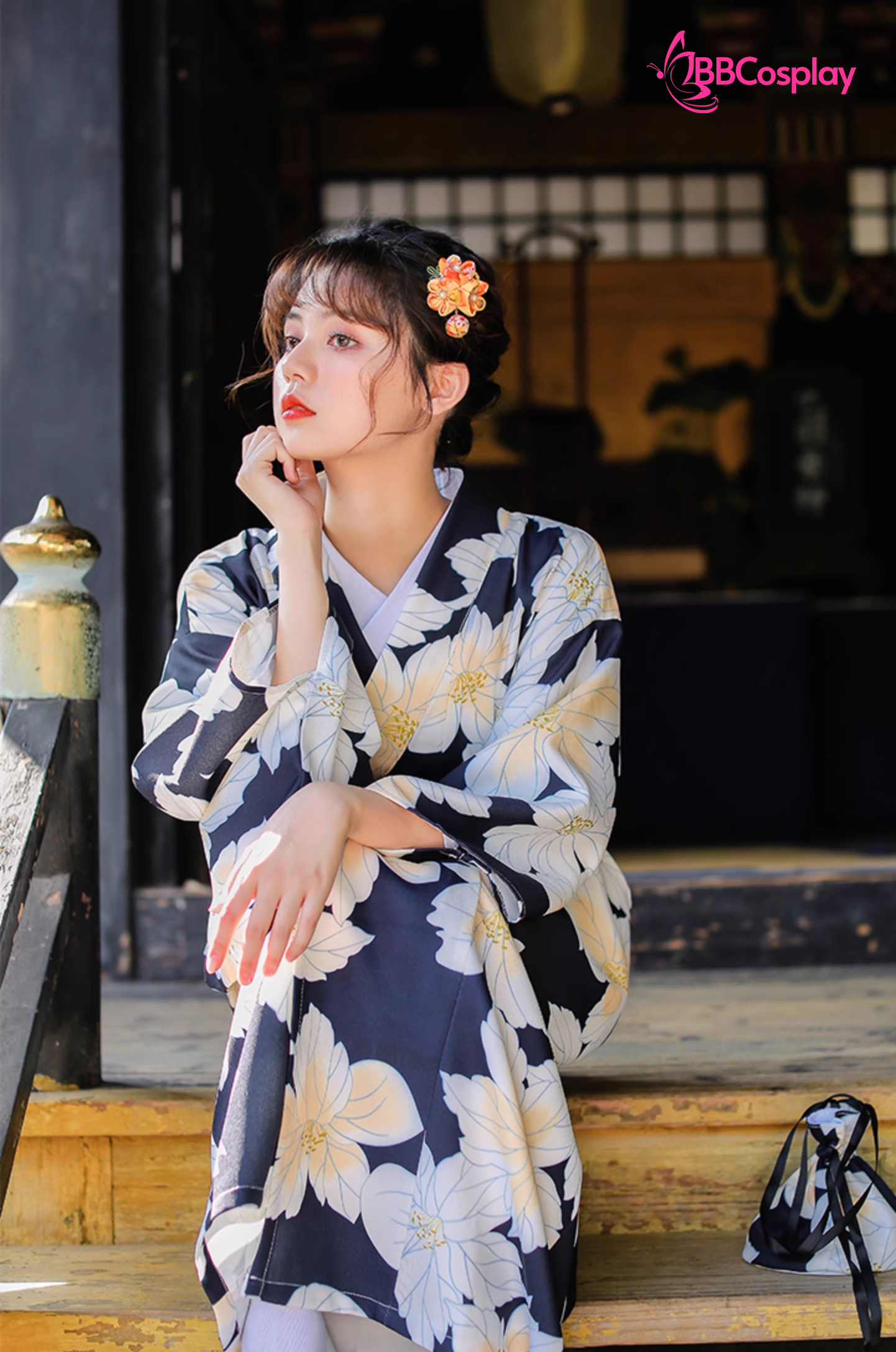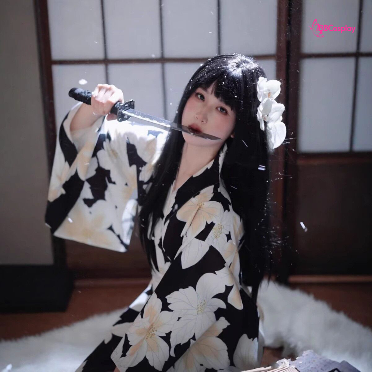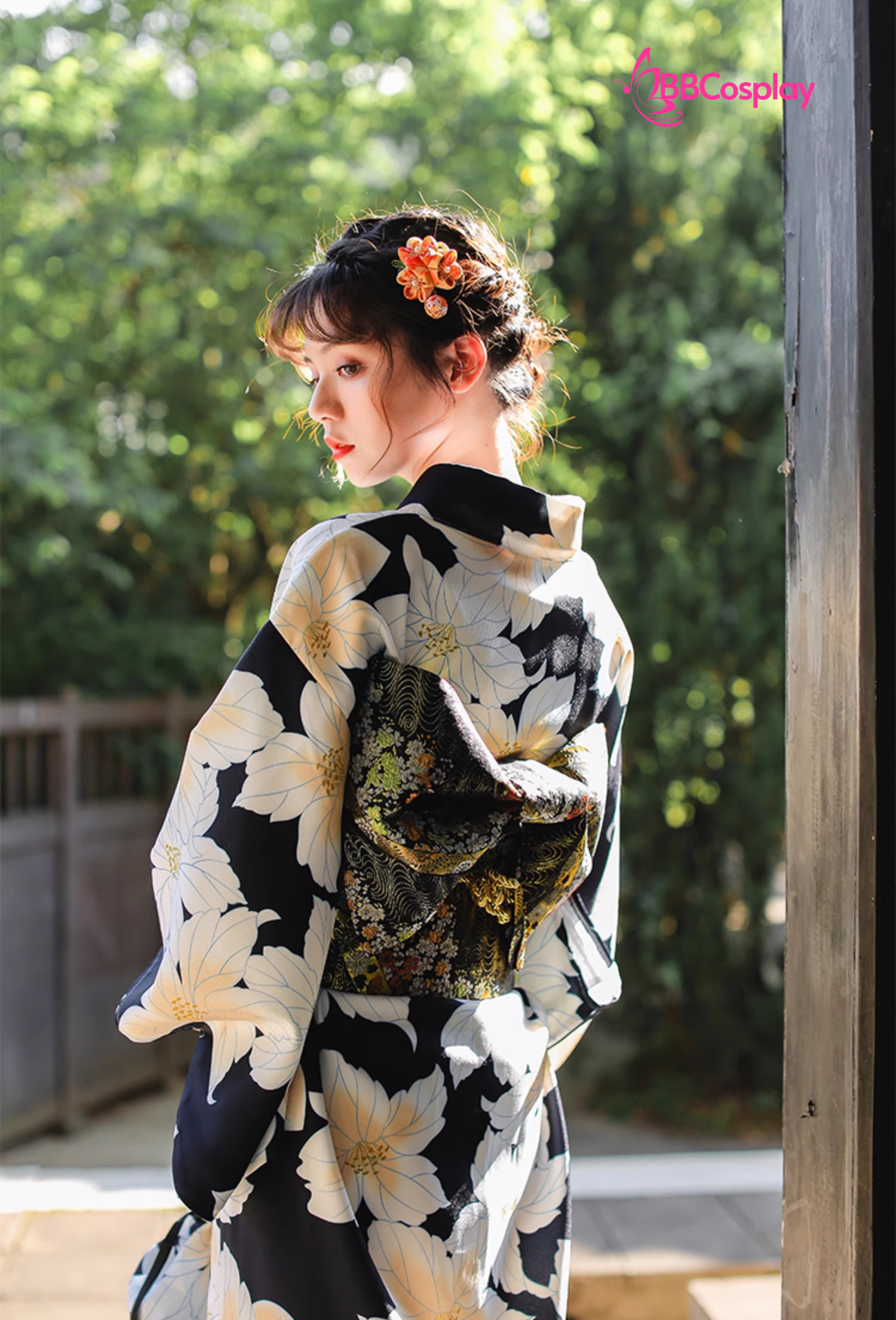 Yukata Đen Hoa Trắng