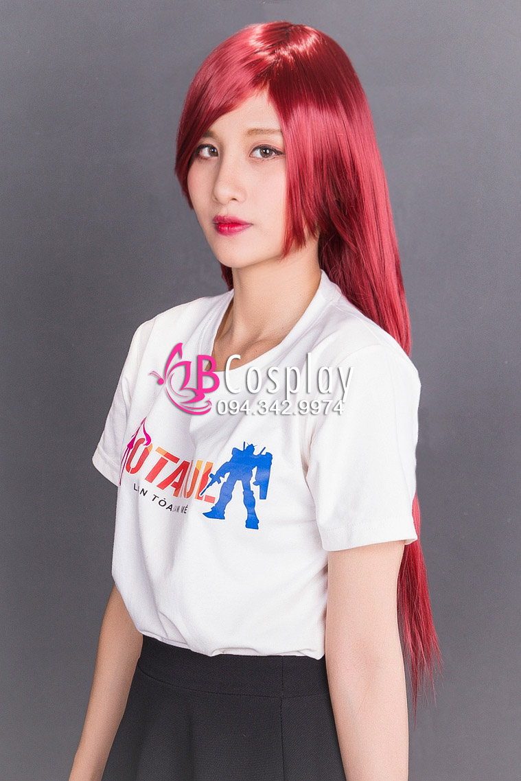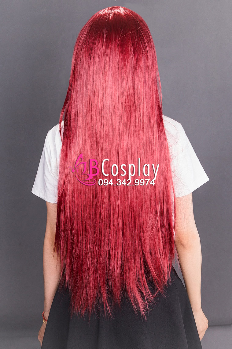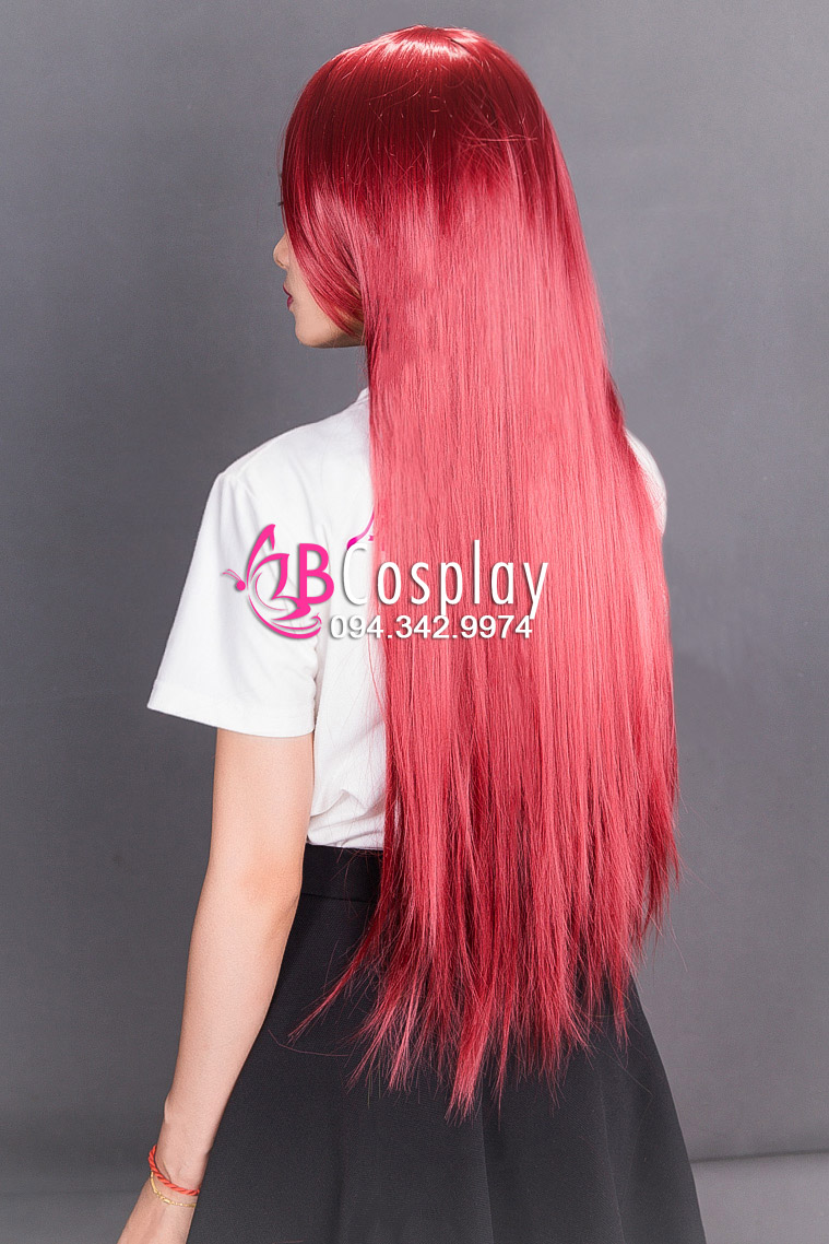 Tóc Giả Đỏ Thẳng Mái Xéo 60Cm
