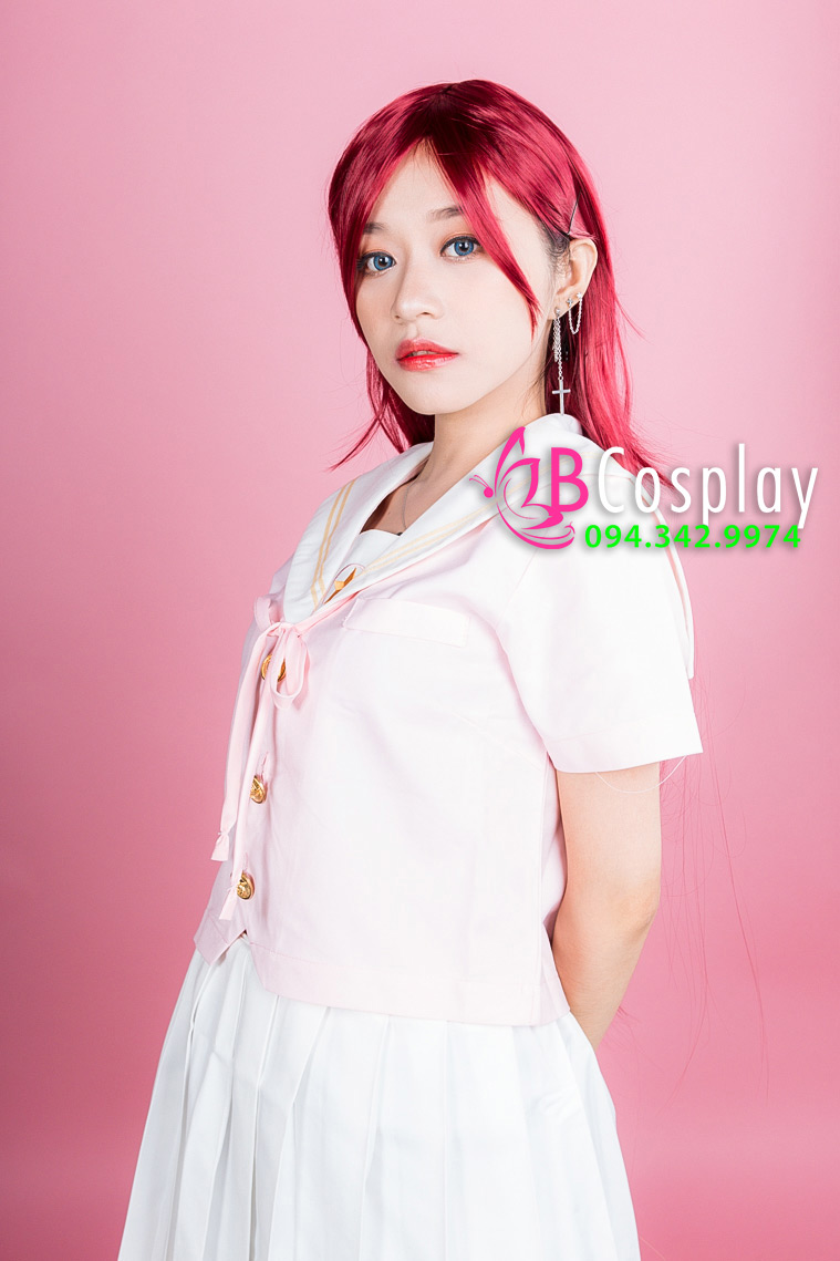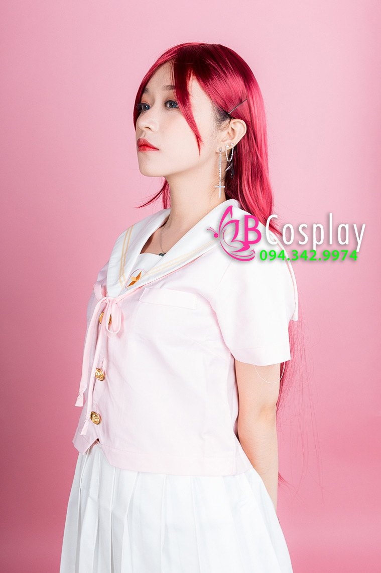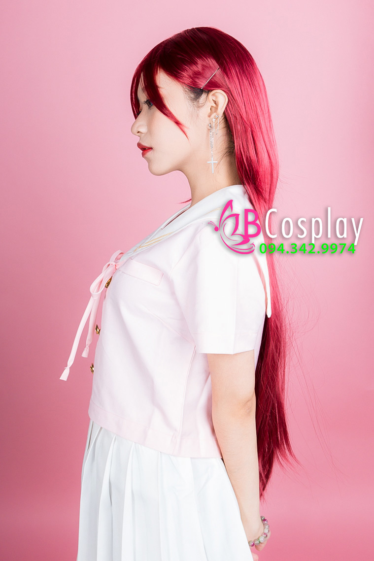 Đồ Nàng Hầu Maid Hồng Tạp Dề Trắng Kèm Nhiều Nơ