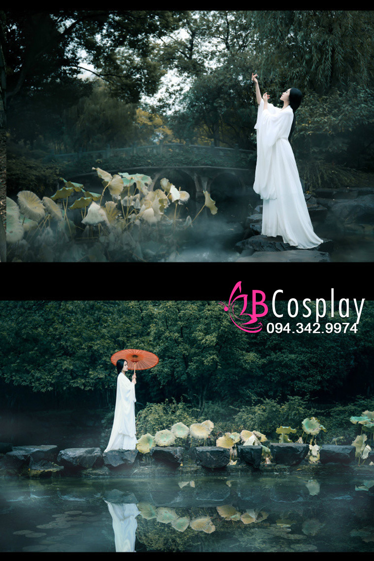 BBcosplay giới thiệu bộ cổ trang sắc trắng thanh khiết, voan mềm nhẹ, thướt tha. Nếu bạn mê đắm sắc trắng dịu dàng thì đây là mẫu bộ đồ cổ trang trắng ko thể bỏ qua. Hãy để vạt áo của bạn tung bay trong gió với trang phục của BBcosplay.