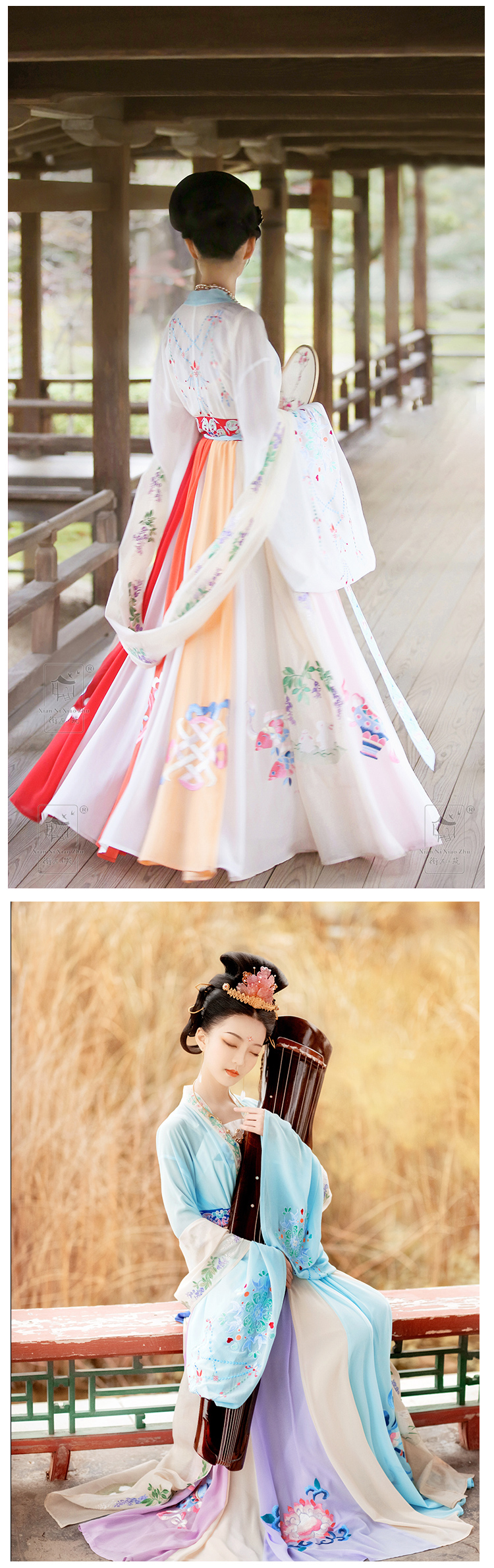 Hán phục Hàm Nê Tiểu Trúc sẽ đem lại sự thoải mái cho người mặc vì chất voan, lụa rất thoáng khí và mềm mại. Trang phục bao gồm áo, váy và dây; có nhiều size, phần dây lưng còn có thể tăng giảm tùy ý theo số đo của người mặc.