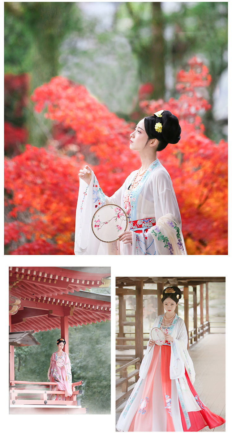 áo yếm + áo ngoài + váy xòe + khoác + quạt + chu sa + phi bạch + trâm + giày thêu