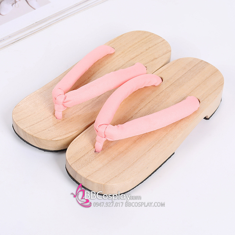 Guốc Gỗ Geta Bản Gỗ Quai Hồng