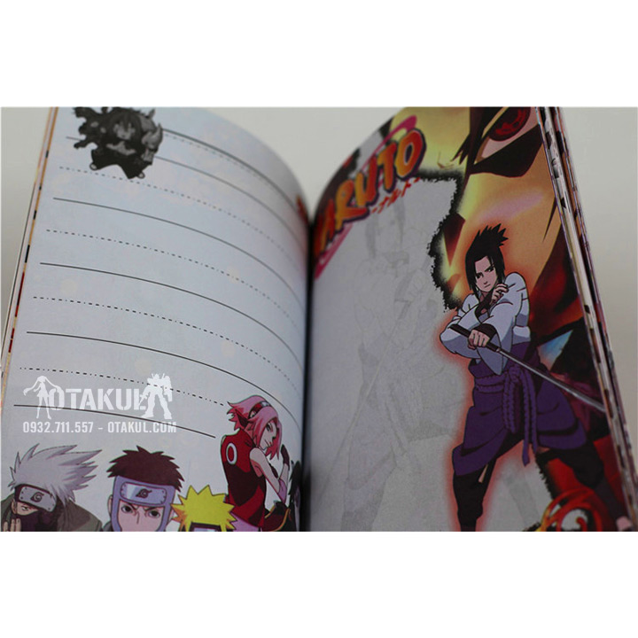 - Thiết kế dễ thương: Lấy cảm hứng từ thế giới ninja đầy màu sắc, mỗi trang sổ đều được trang trí bằng những họa tiết độc đáo như: biểu tượng làng Lá, hình ảnh các ninja nổi tiếng, hoặc những câu nói bất hủ của Kakashi.
