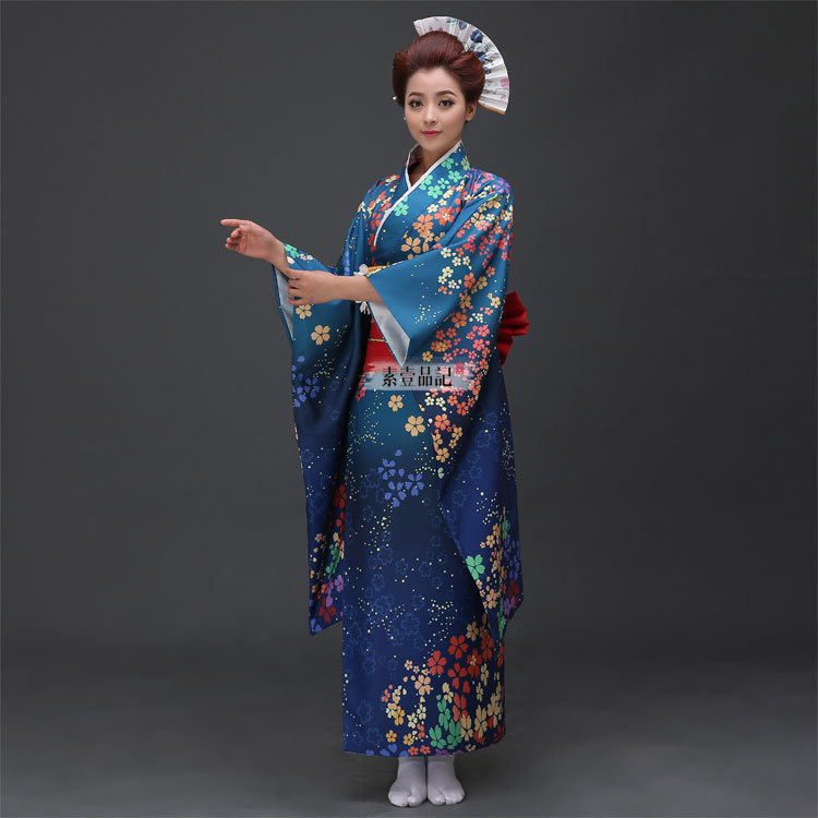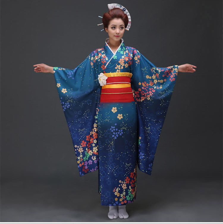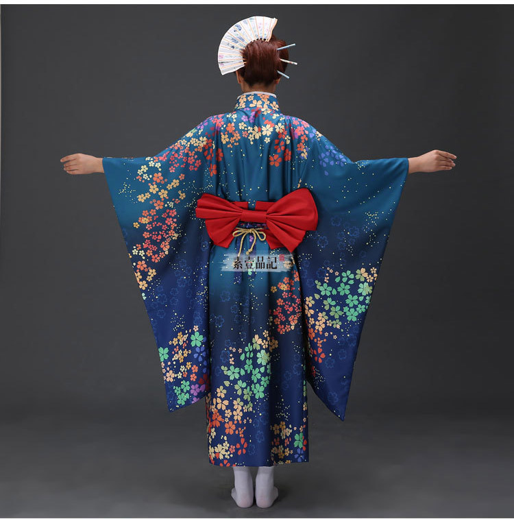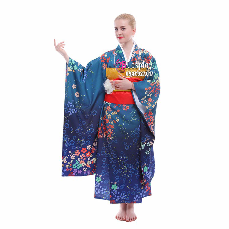Kimono Umi Nhật - Kimono Xanh Dương Hoa Ngũ Sắc