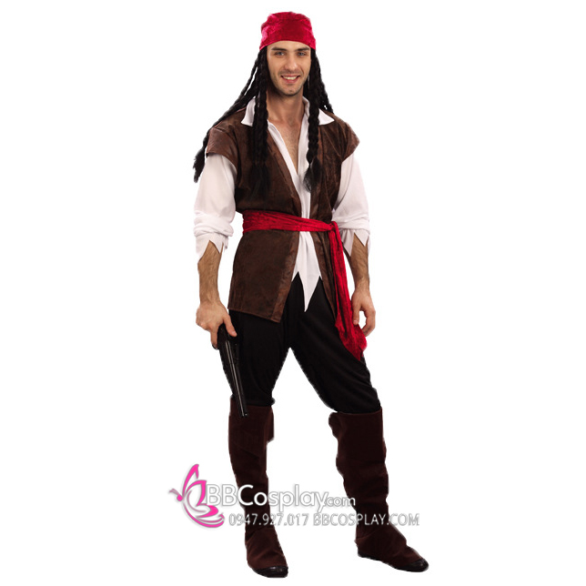 Đồ Cướp Biển Hải Tặc Áo Nâu Quần Đen Nón Đỏ