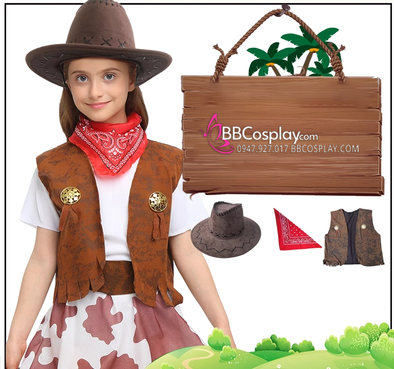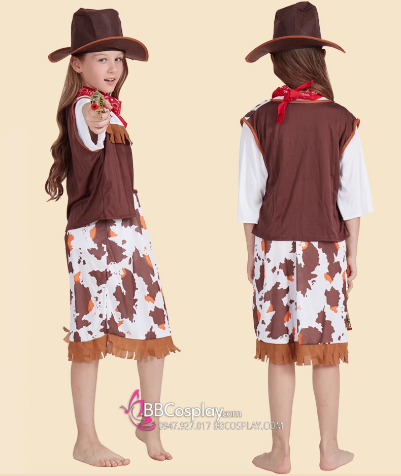 Bộ Halloween Cho Bé Gái Nhân Vật Cao Bồi