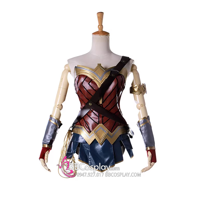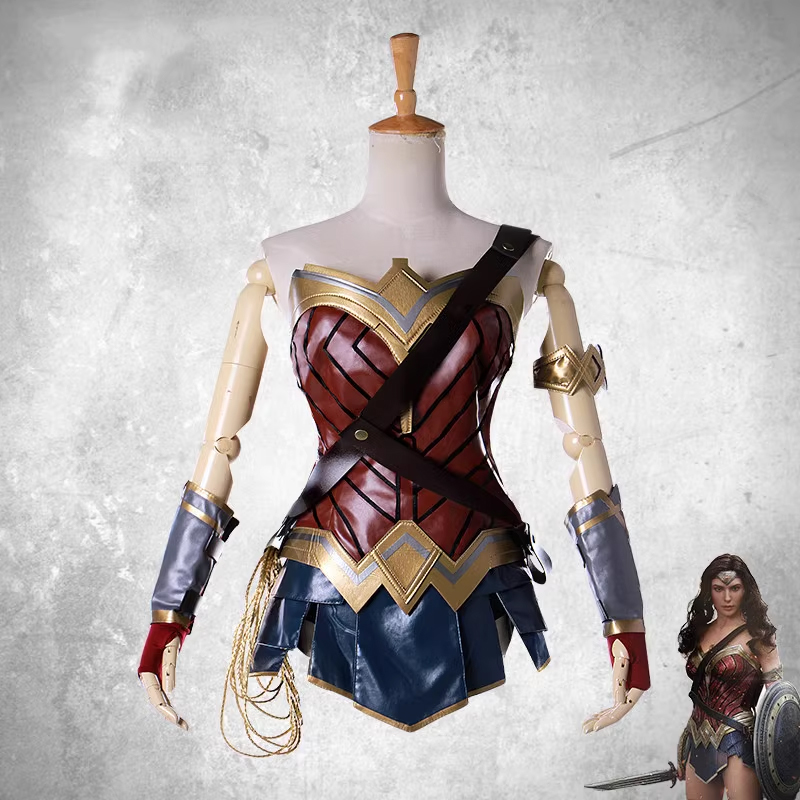 Wonder Woman là một nữ anh hùng của vũ trụ DC Comics với xuất thân là một vị công chúa của người Amazon. Wonder Woman được những vị thần trên đỉnh Olympus ban cho sức mạnh vì thế cô mang trong mình một nguồn sức mạnh khổng lồ có thể san phẳng cả vũ trụ. Trang Phục Wonder Woman Bằng Da có hai gam màu chủ đạo là đỏ và xanh với các đường nét ôm sát cùng rất nhiều trang bị phải kể đến là vòng tay, sợi dây thừng, kiếm và khiên,...