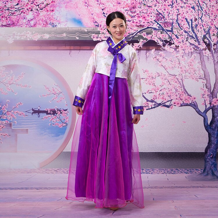 - Hanbok nữ gồm 2 phần chính là Jeogori và Chima. Jeogori là áo lửng dài tới hông và có nơ thắt trước ngực lệch về bên trái. Chima là váy có hình chữ A xếp nếp, được thắt ở phía trên ngực. Kiểu váy này che phủ kín cơ thể, do đó giấu được khuyết điểm cơ thể nhưng lại làm tăng lên sự nữ tính người của phụ nữ.