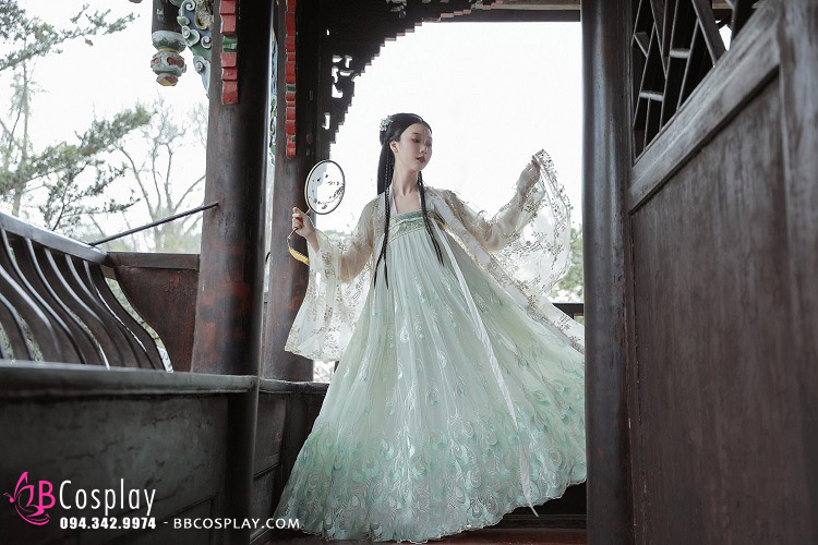Hán phục Khổng Tước Vương sẽ đem lại sự thoải mái cho người mặc vì chất voan, lụa rất thoáng khí và mềm mại. Trang phục bao gồm áo, váy và dây; có nhiều size, phần dây lưng còn có thể tăng giảm tùy ý theo số đo của người mặc.