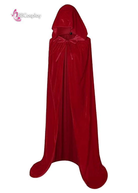 Áo Choàng Đỏ Nỉ Nhung Có Nón Dài - Màu Đỏ Đậm