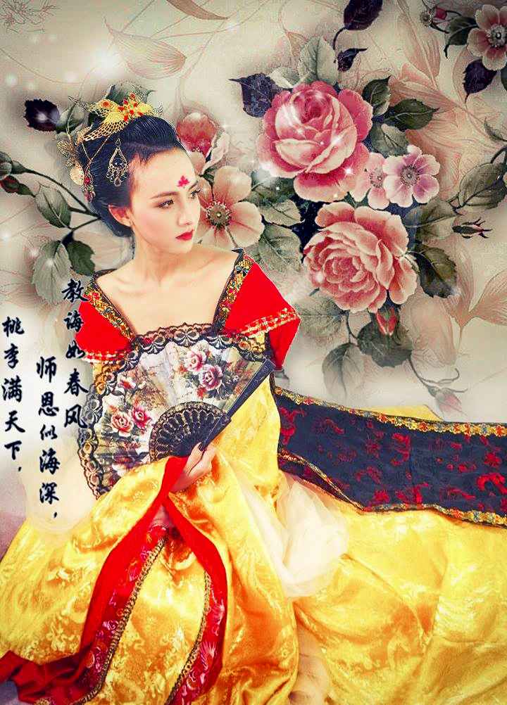 áo yếm gấm + váy dài + áo choàng gấm dài + đai