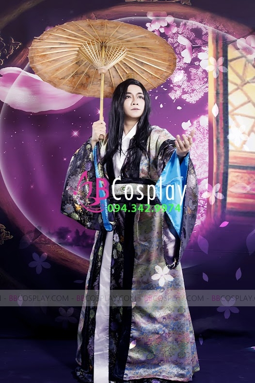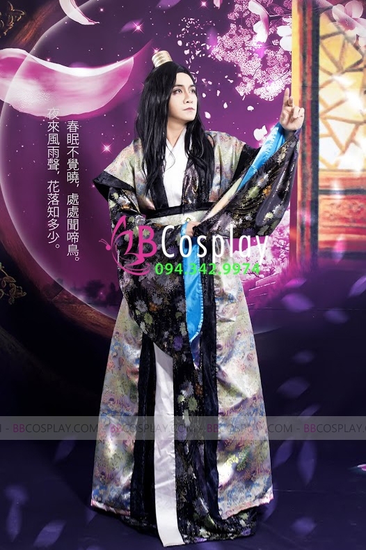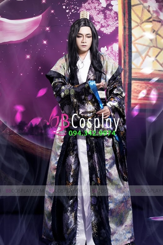 áo gấm đen dài + váy dài + áo ngoài + đai