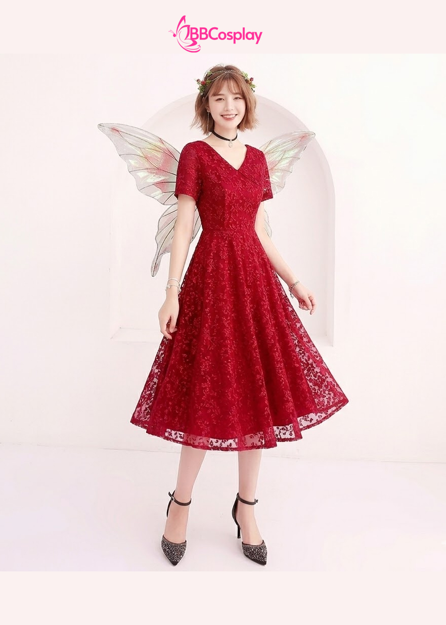 Đầm Dạ Hội Màu Đỏ Ren Hoa Dây Leo