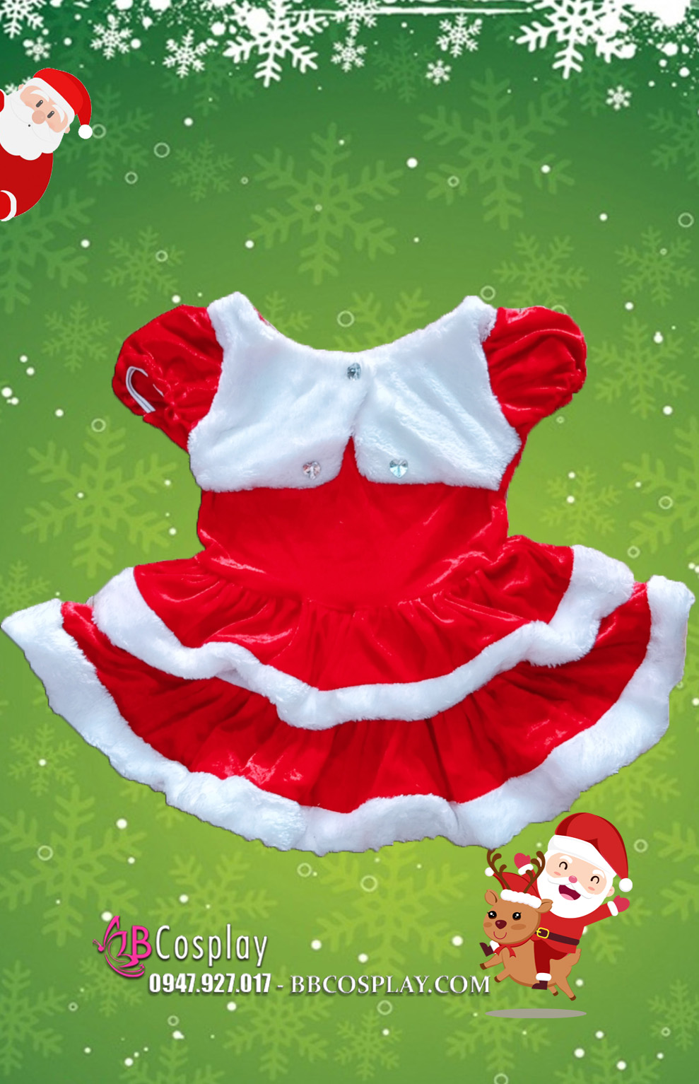 Những ngày cuối năm là thời điểm mọi đứa trẻ đón chờ một ngày lễ trọng đại của năm đó là Giáng Sinh. Vào đêm Giáng Sinh, khi mọi người đều yên giấc, ông già Noel với Trang Phục Noel Trẻ Em sẽ cùng đàn tuần lộc của mình đi phát quà cho những trẻ em ngoan, rong ruổi khắp phố phường và gieo niềm vui đến mọi nhà trong tiết trời giá rét. Nếu Giáng Sinh này bạn vẫn chưa có quà dành cho con thì hãy đến với BBCosplay vì chúng tôi có rất nhiều mẫu trang phục dành cho các bé.