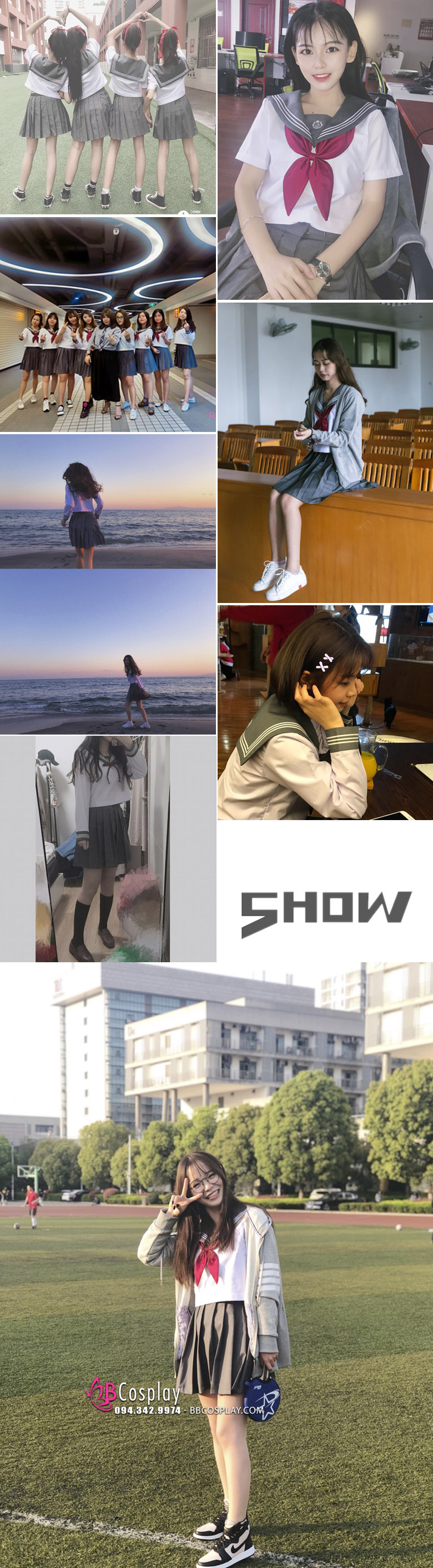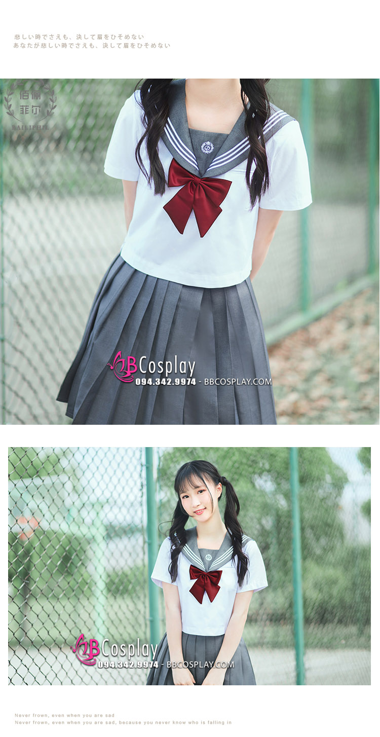 Đồ seifuku nữ sinh Nhật tại BBCosplay có nhiều size và mẫu mã cho bạn lựa chọn. Sản phẩm được may bằng chất liệu kate, kaki dày dặn, form dáng chuẩn, phù hợp với nhiều dáng người. Shop còn hỗ trợ thuê mua nhiều phụ kiện khác nhau sẽ giúp trang phục nữ sinh của bạn trở nên đẹp và đặc biệt nhất.