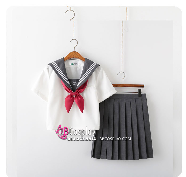 Đồng Phục Nữ Sinh Nhật Bản Trắng Phối Xám