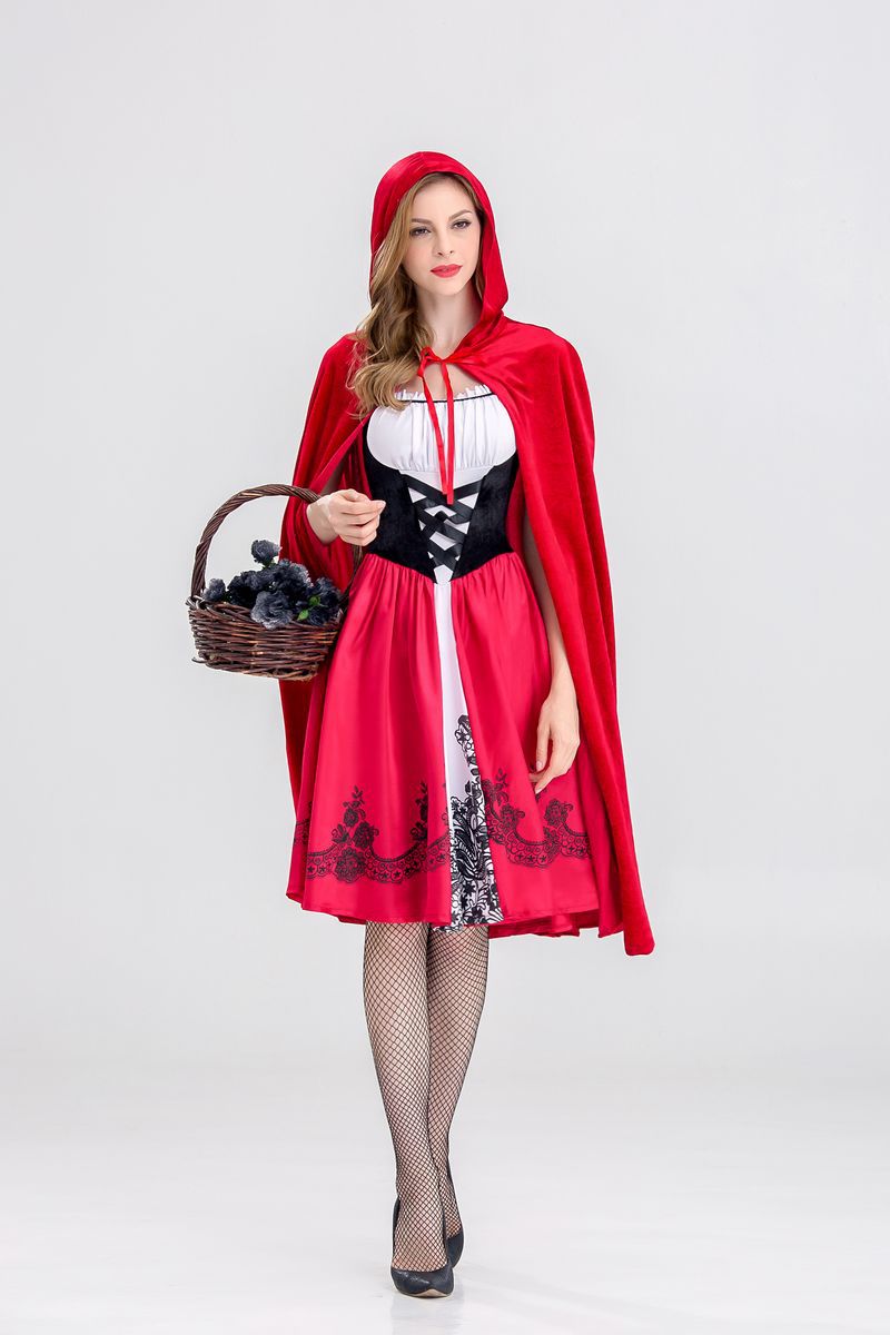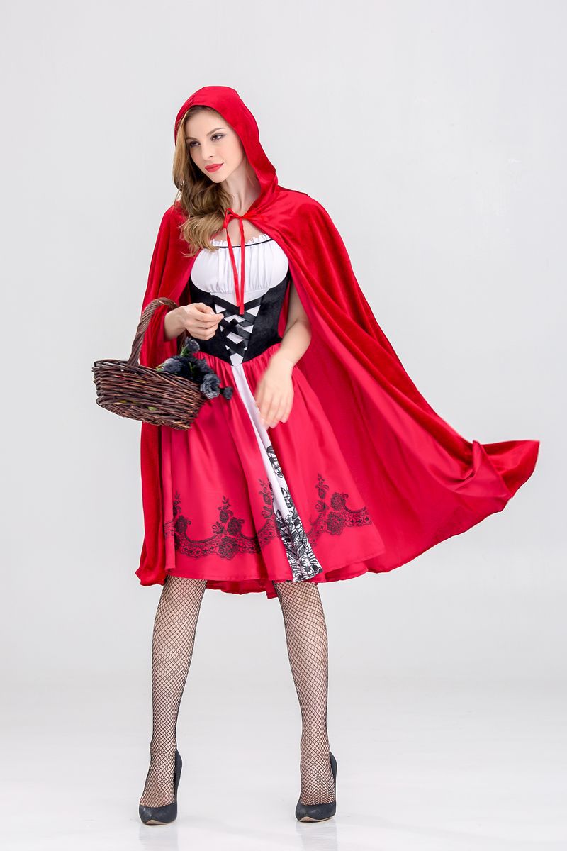Lấy cảm hứng từ nguyên tác truyện, Trang Phục Cô Bé Quàng Khăn Đỏ với tông màu chủ đạo là trắng, đen và đỏ tạo cho người mặc sự trong sáng nhưng cũng không kém phần bí ẩn. Trang phục làm từ vải kate,ren với dáng váy xòe cùng điểm nhấn ở phần eo sẽ làm tôn lên vóc dáng của bạn. Chúng tôi còn cung cấp phụ kiện theo set với đa dạng mẫu mã chắc chắn sẽ khiến bạn hài lòng.