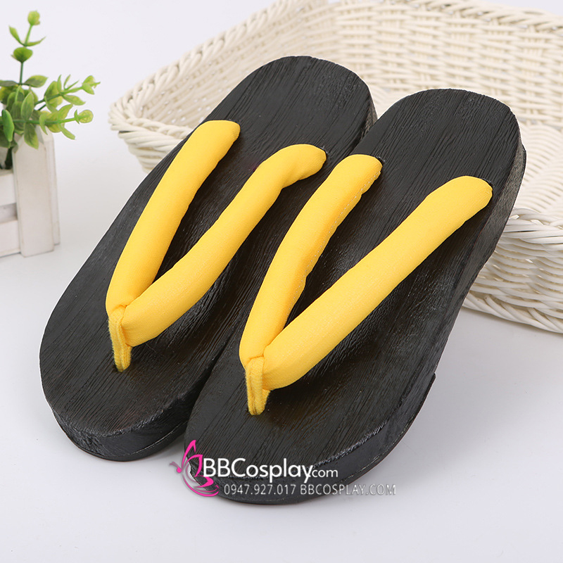 Guốc Gỗ Geta Bản Gỗ Đen Đế Thấp Quai Vàng
