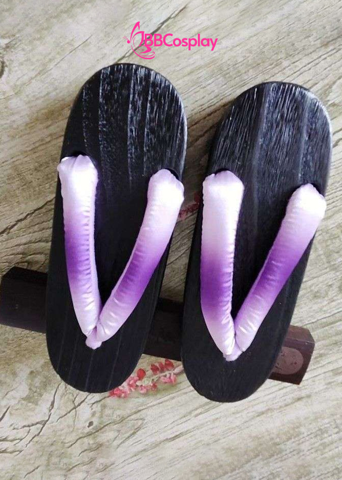 Guốc Gỗ Geta Bản Gỗ Nâu Đế Thấp Quai Tím Loan Màu