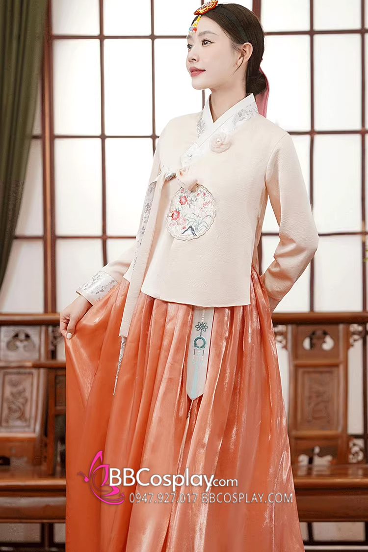 Hanbok Cao Cấp Chuẩn Hàn Tone Cam Dịu Dàng