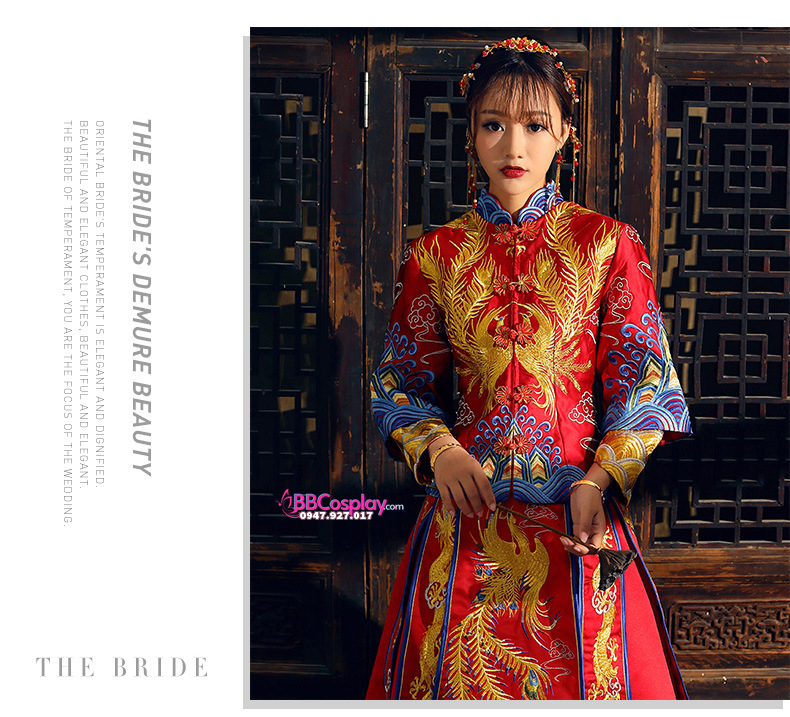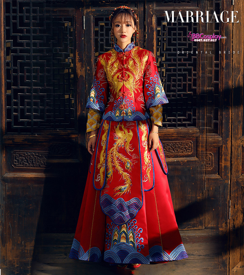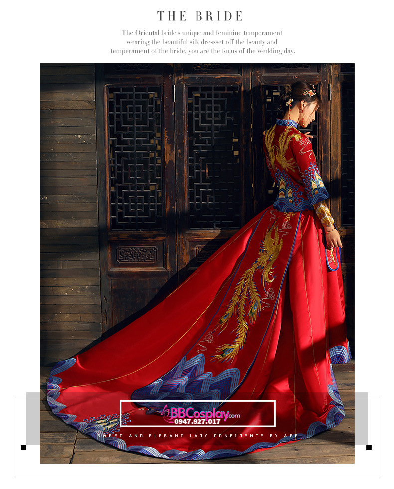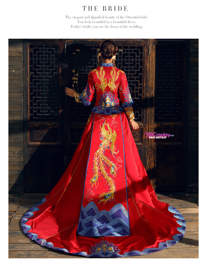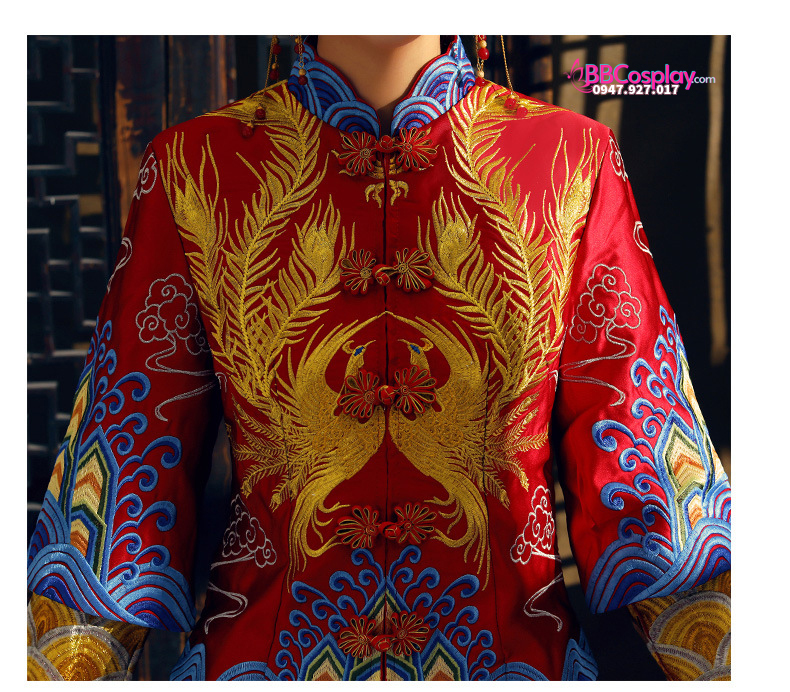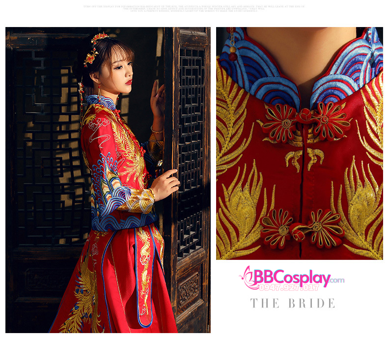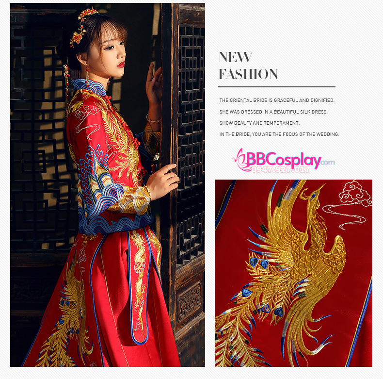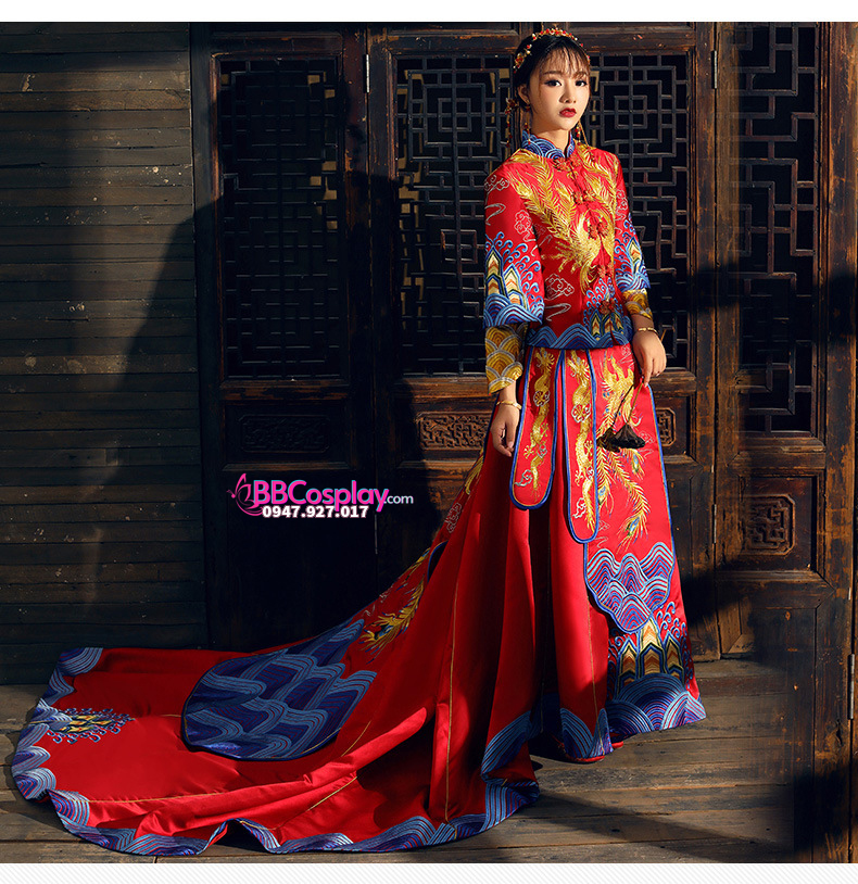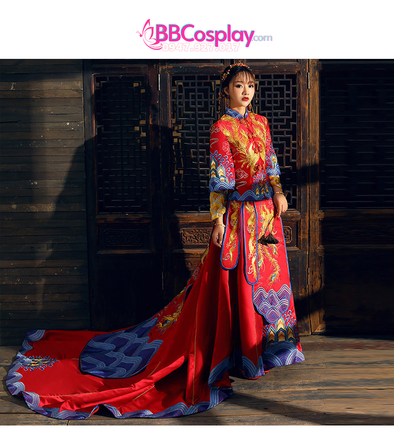 Hỉ Phục Tân Nương 2019 là mẫu hỉ phục luôn cháy hàng tại BBCosplay vì vải phi chất đẹp, dày dặn; thêu rồng phụng bằng chỉ vàng và xanh rất hiếm gặp, giá hạt dẻ và còn được giảm nếu thuê cùng set bộ hỉ phục nữ. Album và ngày cưới của bạn sẽ trở nên rất đẹp và lộng lẫy nếu bạn chọn hỉ phục tại BBCosplay.