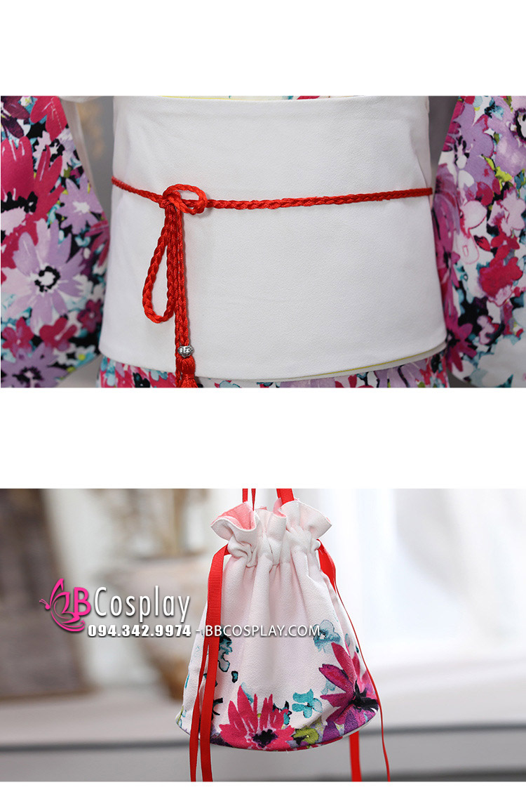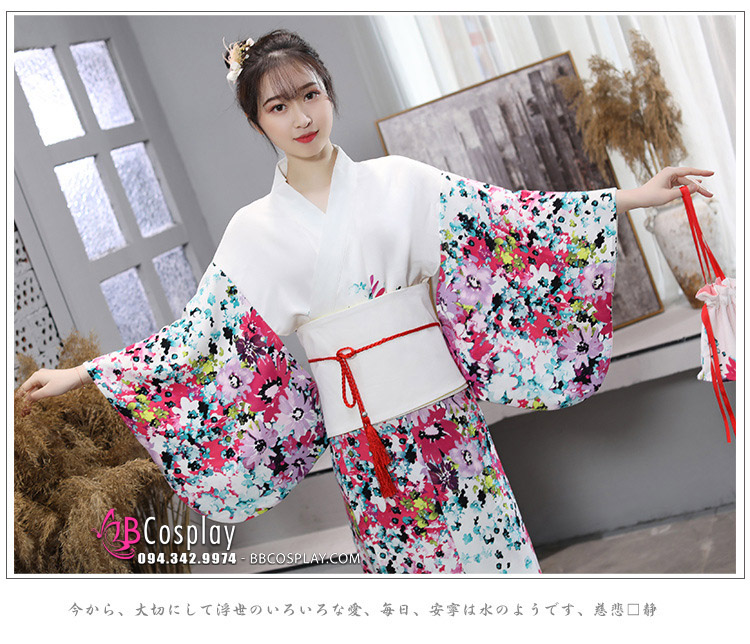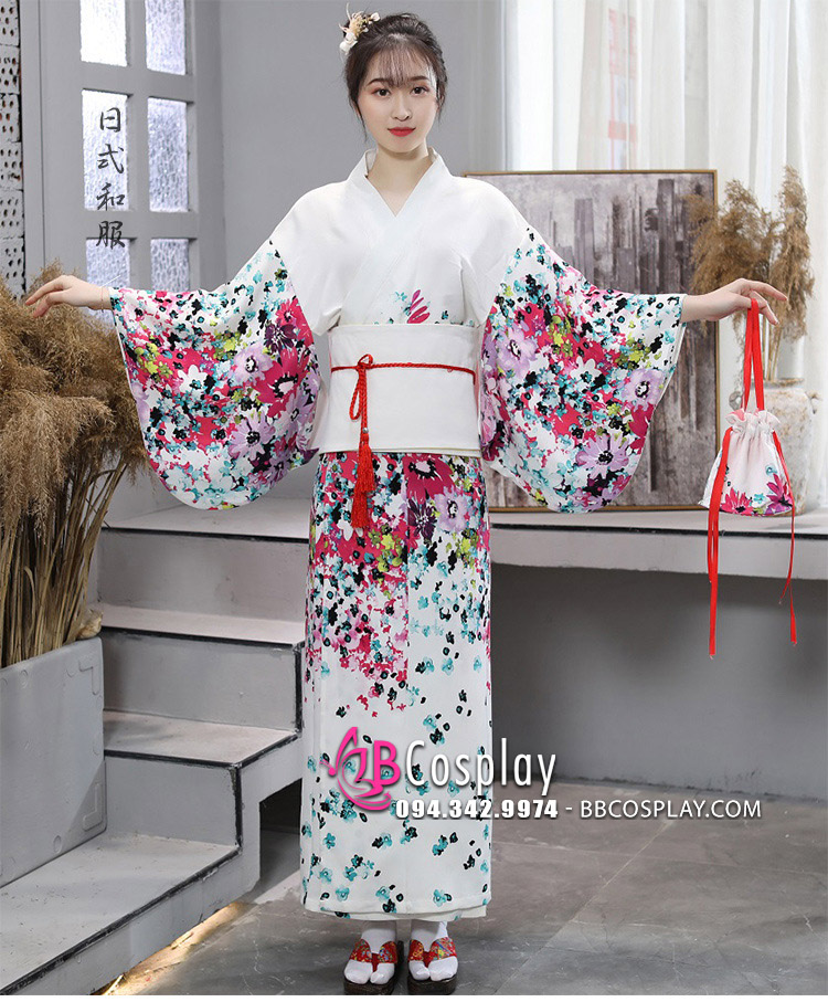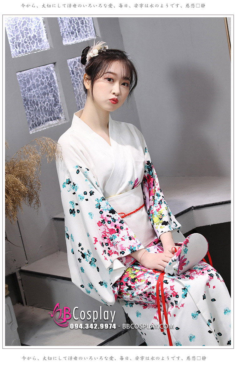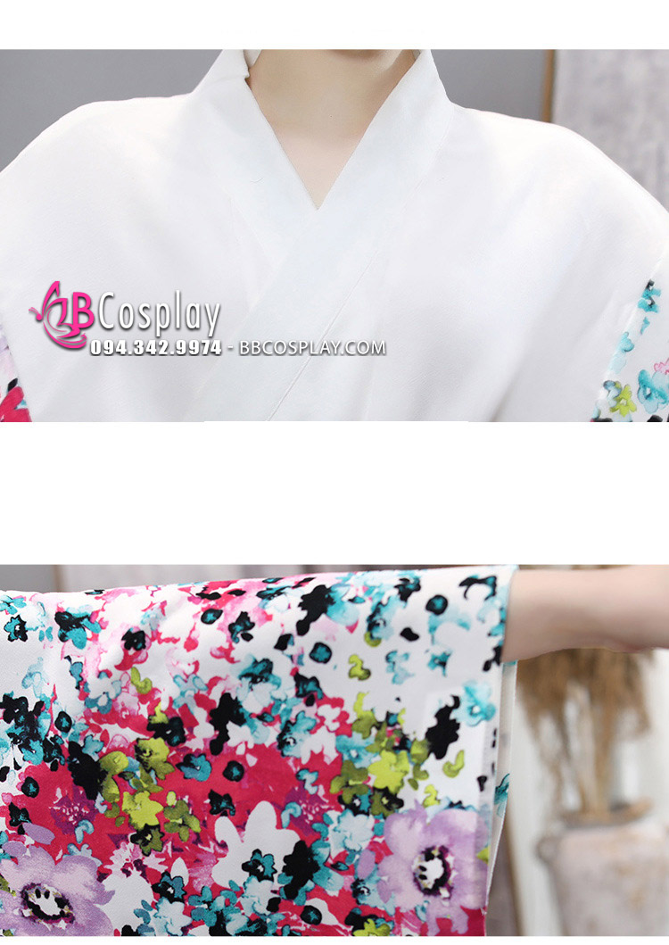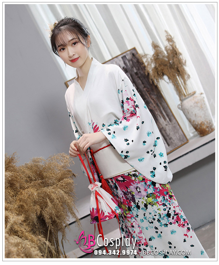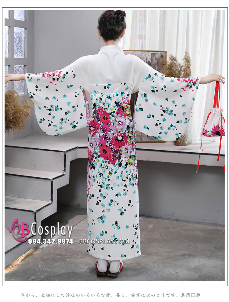 Kimono Yukata Nhật Bản Trắng Hoa Hiện Đại