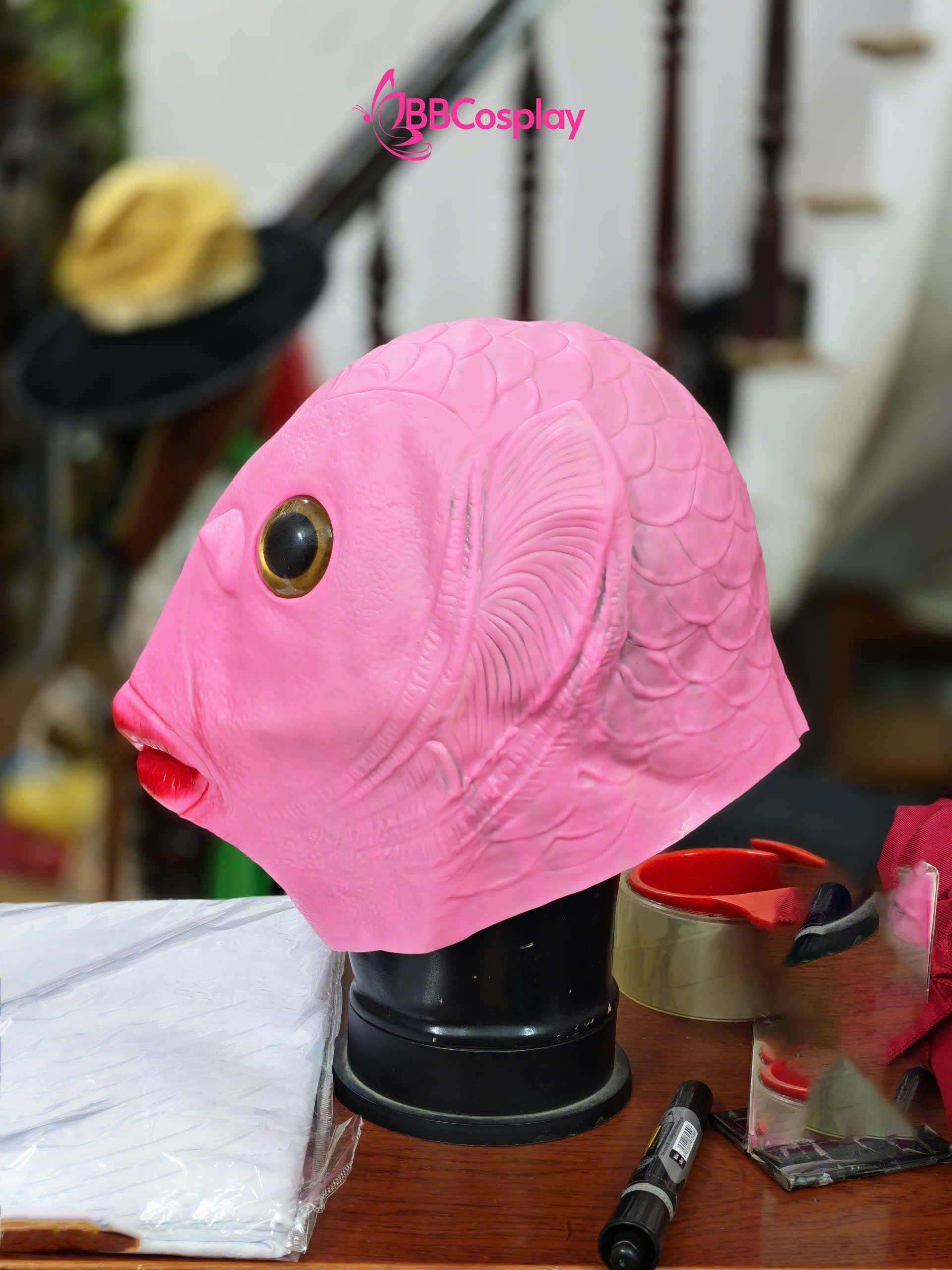 Mặt Nạ Cá Silicon - Mặt Nạ Cá Hồng Môi Đỏ