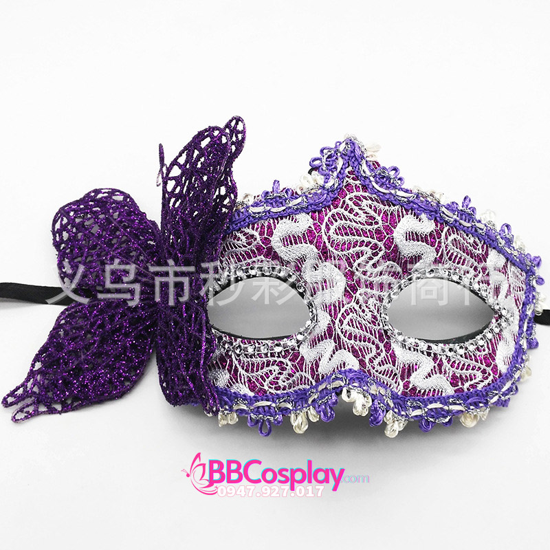 Mặt Nạ Nửa Mặt Ren Cài Bướm - Màu Tím
