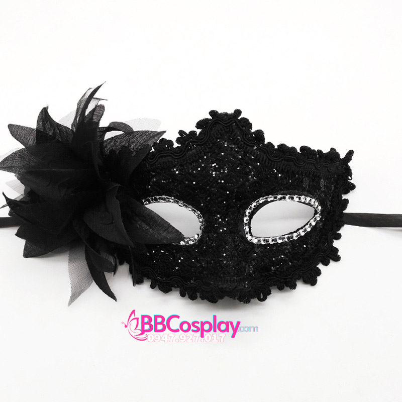 Mặt Nạ Nửa Mặt Ren Cài Hoa - Màu Đen